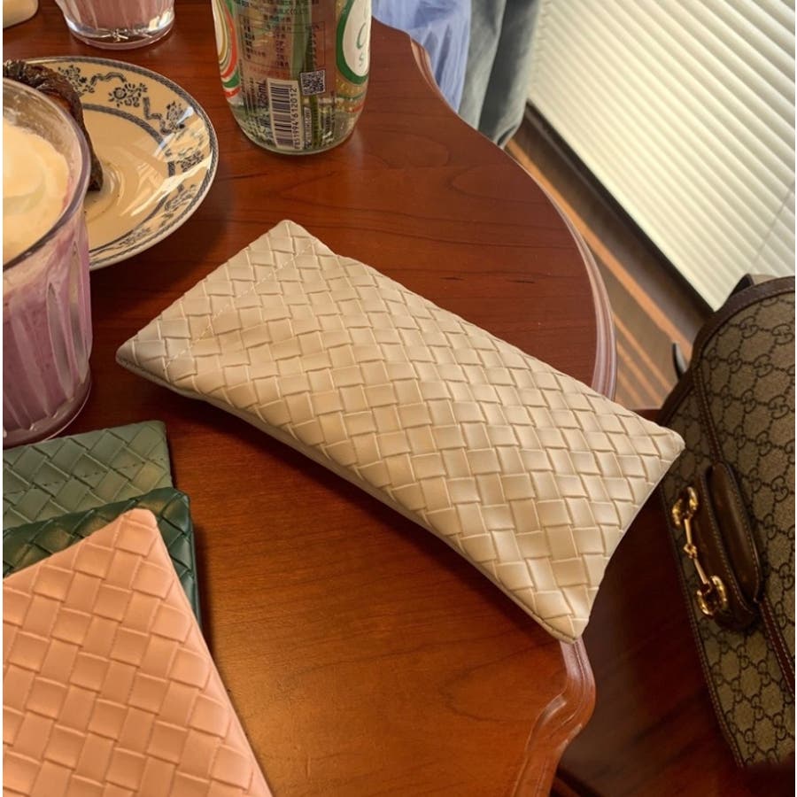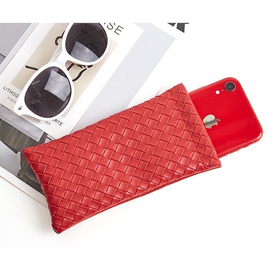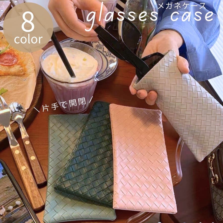 編み込み風のデザインがおしゃれなメガネケースです。