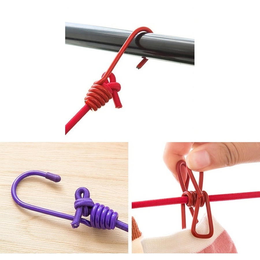 フックを引っ掛けるだけでどこでも洗濯物が干せるピンチ付きランドリーロープ。