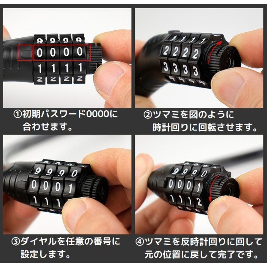 ダイヤル式ワイヤーロック 4桁ダイヤルロック 自転車