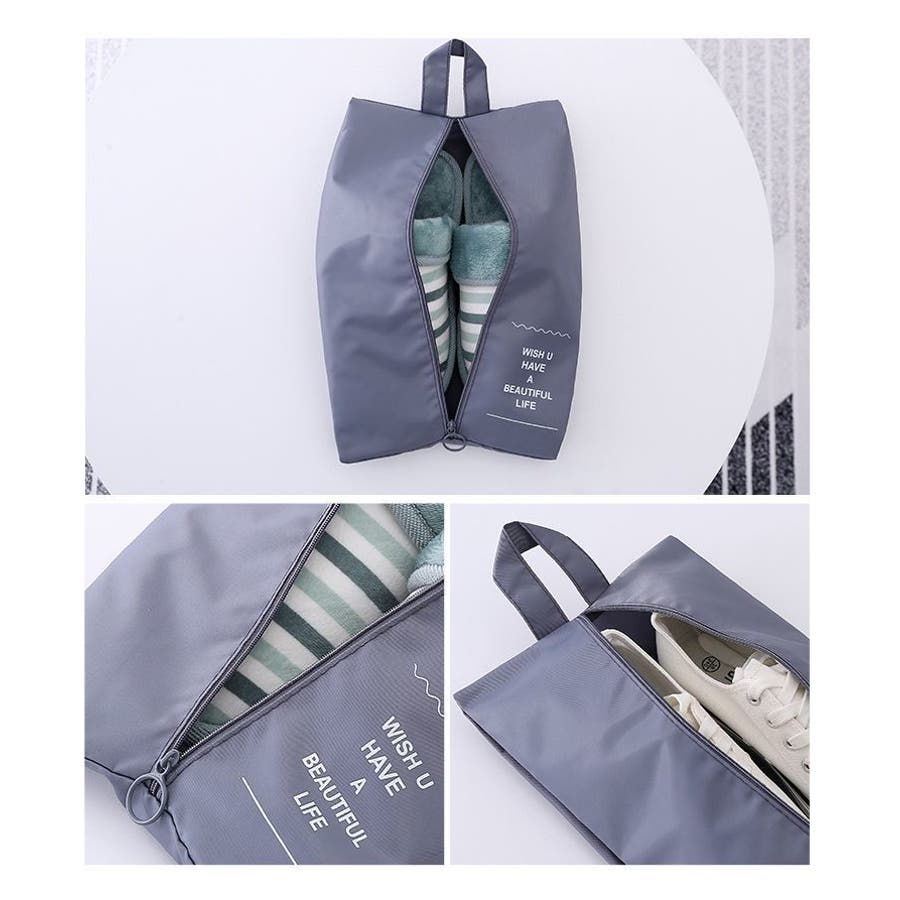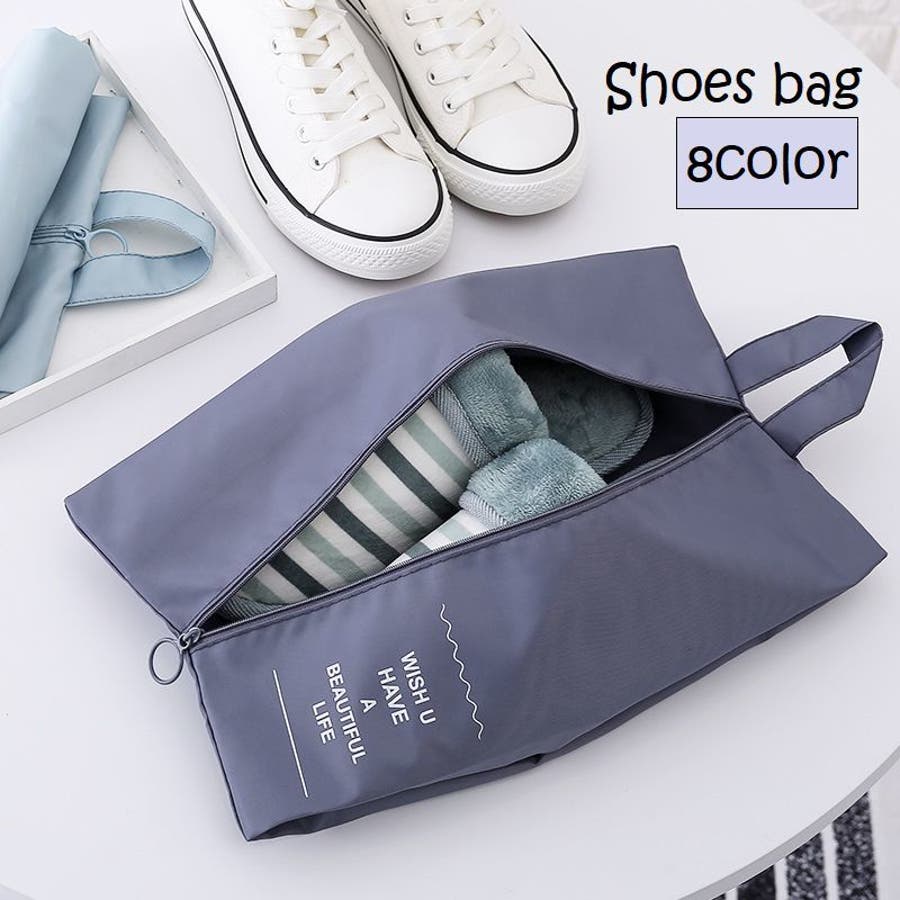 シンプルなデザインの子供から大人まで使えるシューズバッグです。