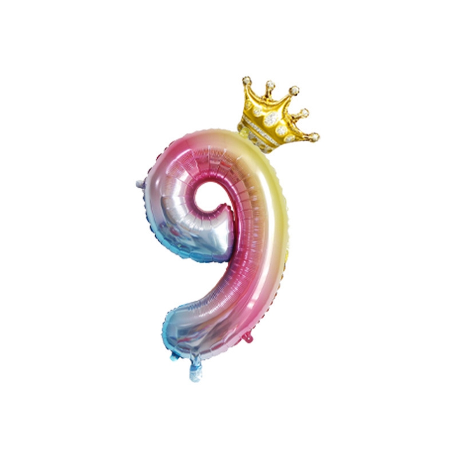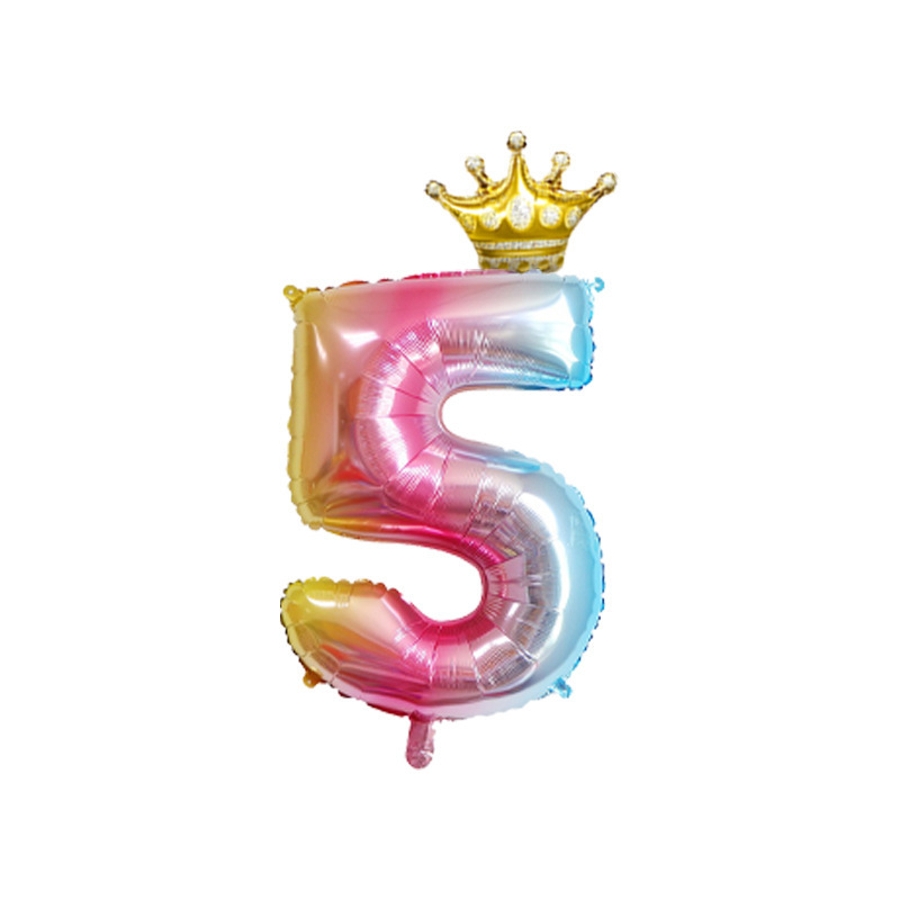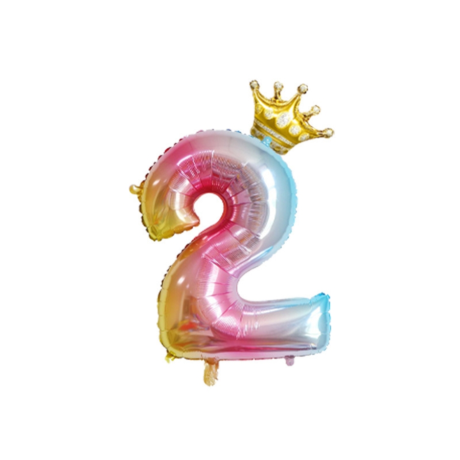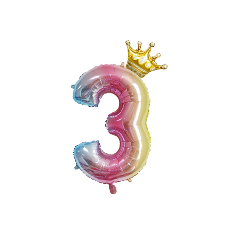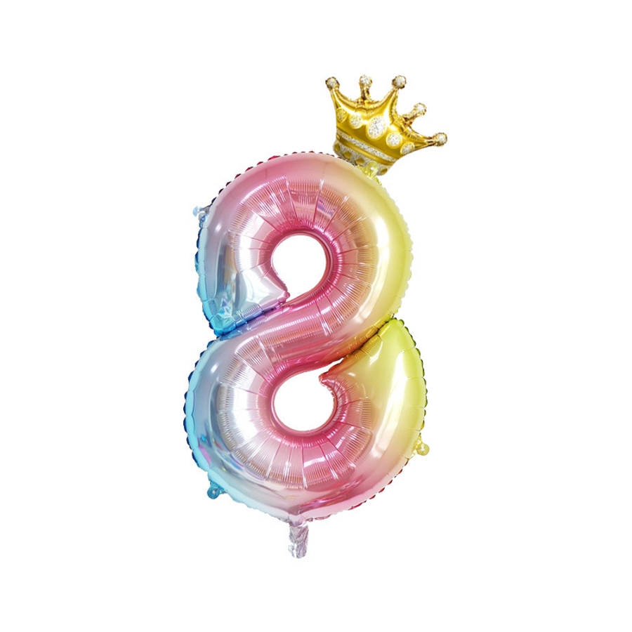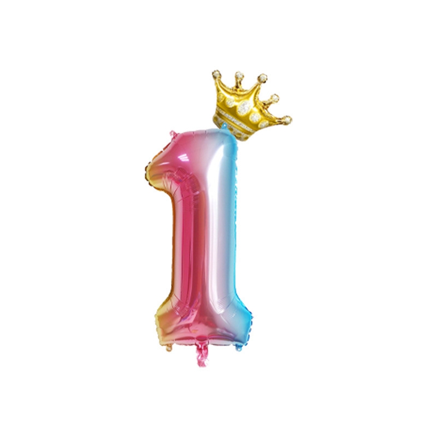 鮮やかなグラデーションカラーが可愛い、王冠付きナンバーバルーンです。