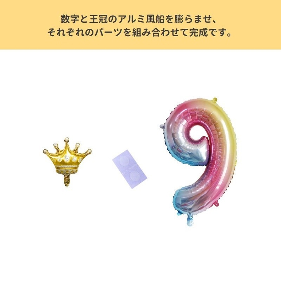 投稿日:2023.11.07グラデーションの色合いや王冠付きのデザインが気に入り購入しました。子供の誕生日に飾って使いたいと思います。