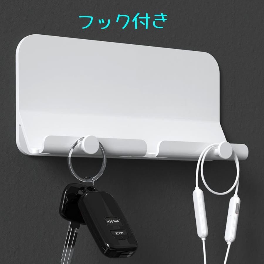 下の部分に充電コードが出せるようになっており、そのまま充電可能です。フック付きなので、ちょっとした小物やイヤホンコードやキーなども掛けておくこともできます。