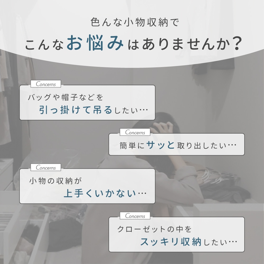 バッグやベルト、ネクタイなどの小物類をスッキリ収納◎