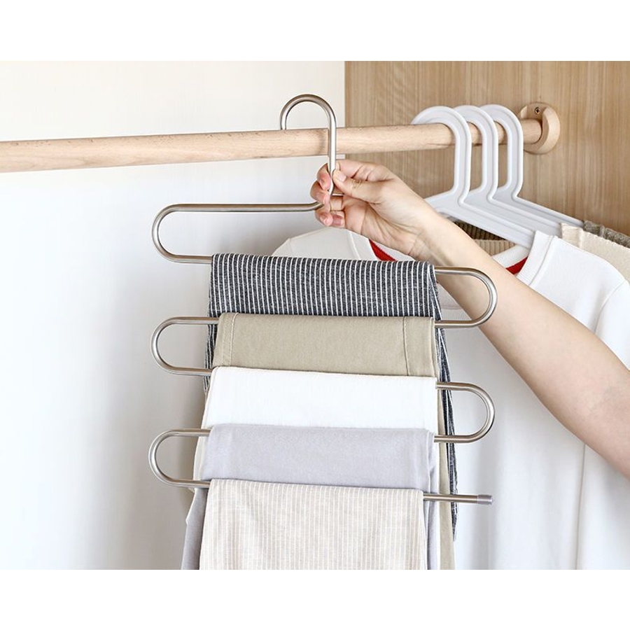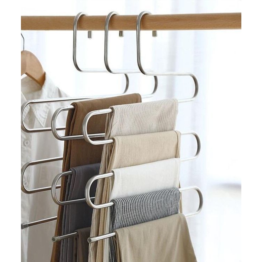 省スペースな5連S字型スラックスハンガー2本セットです。