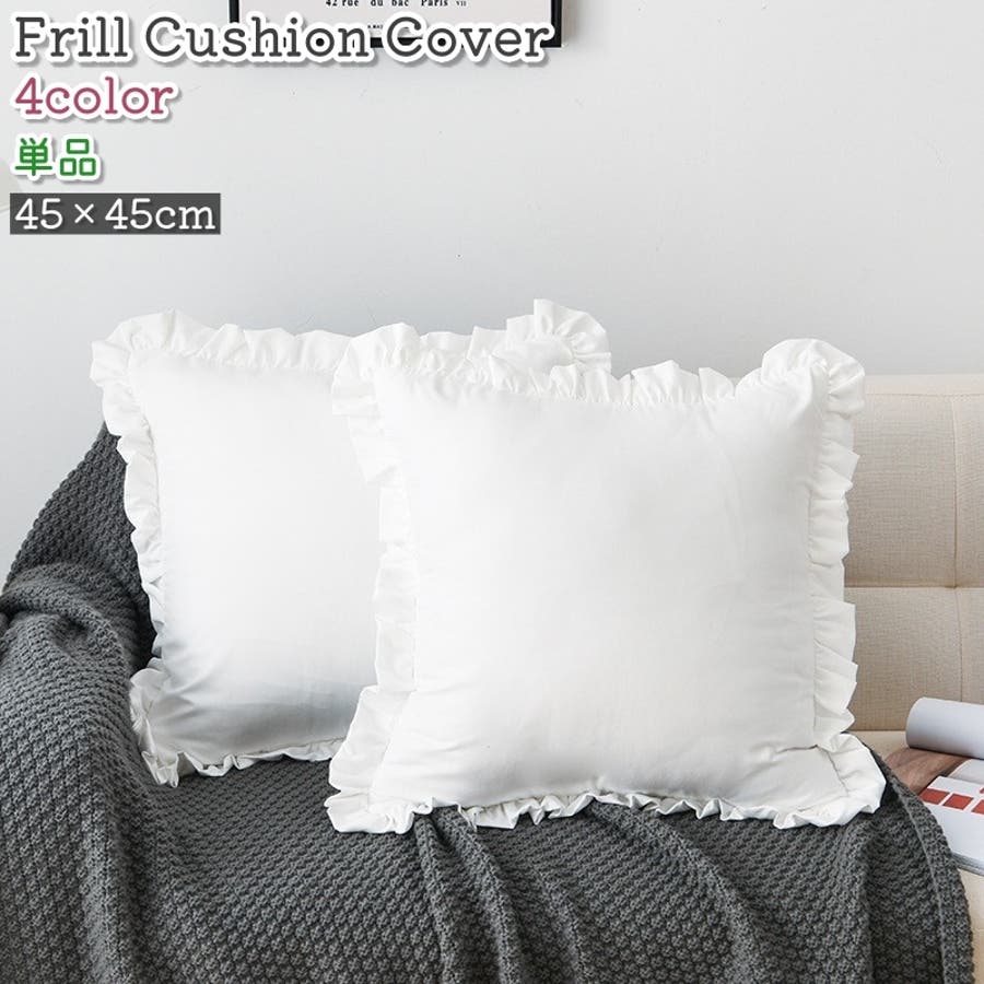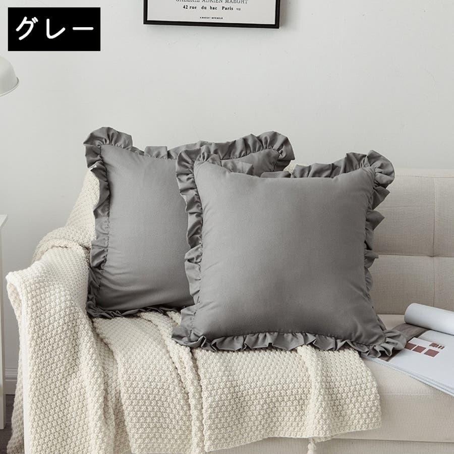 シンプルでおしゃれなフリル付きクッションカバーです。