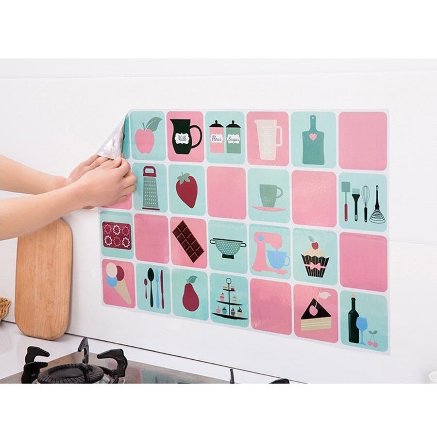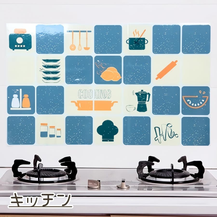 コンロ前の油汚れ対策におすすめ◎おしゃれなキッチンシートです。