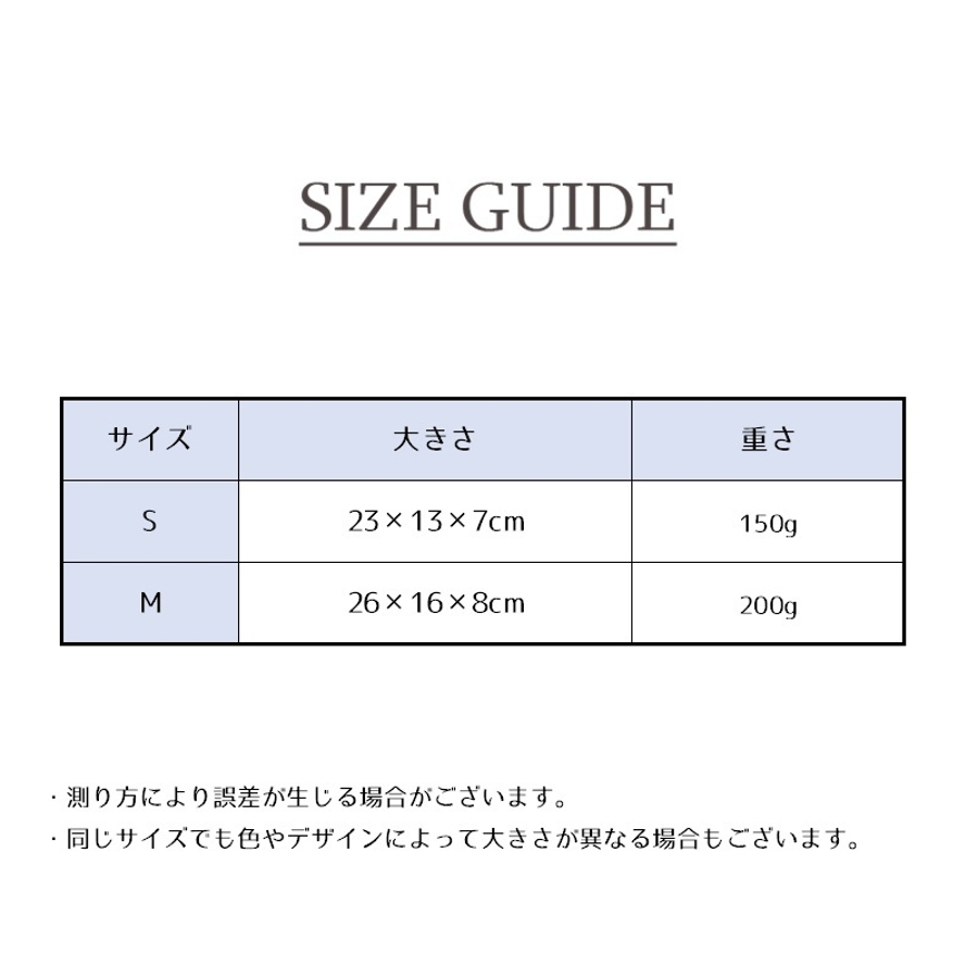 | サイズ | M【26×16×8cm】 / S【23×13×7cm】 |