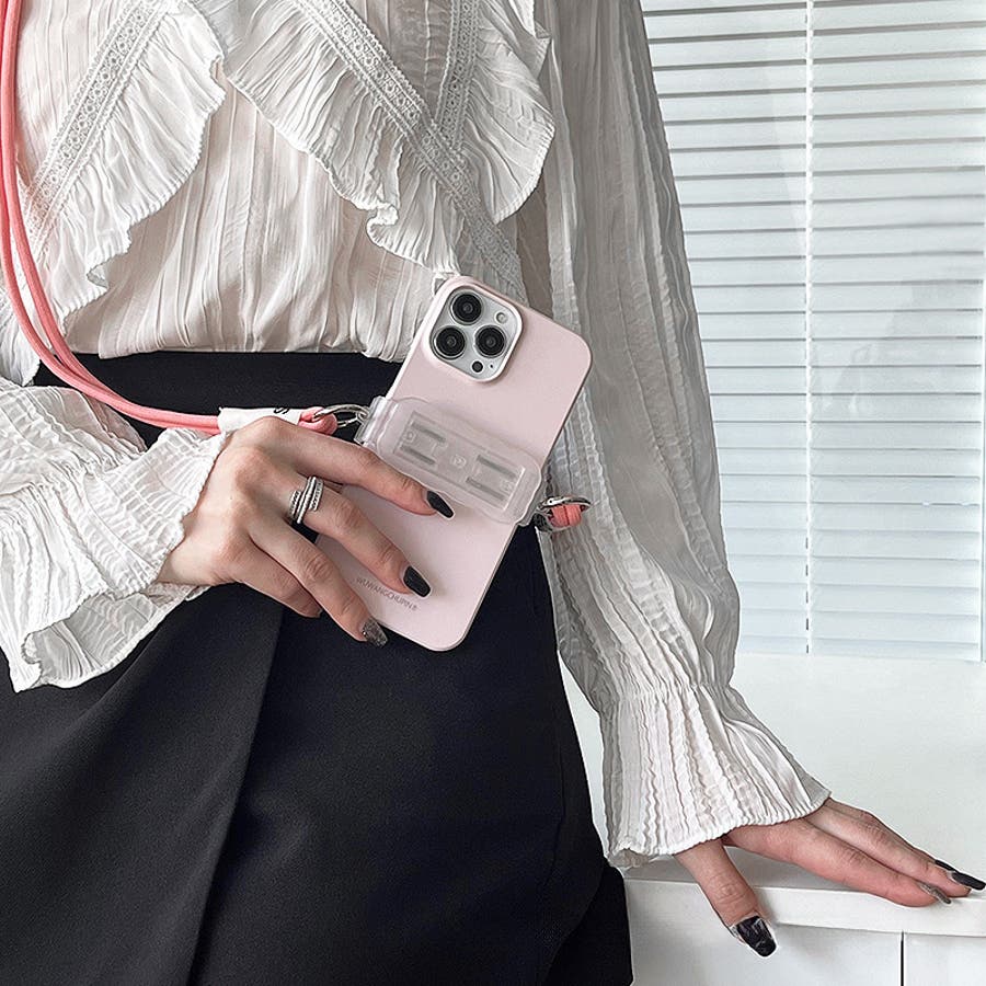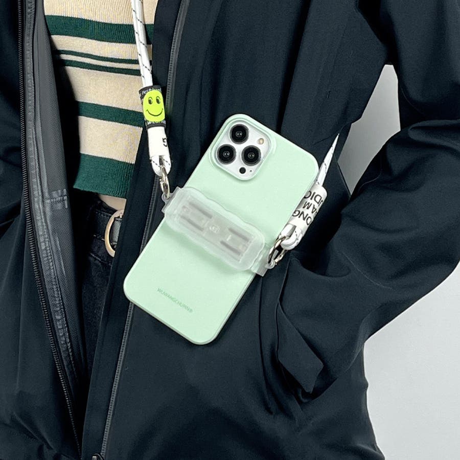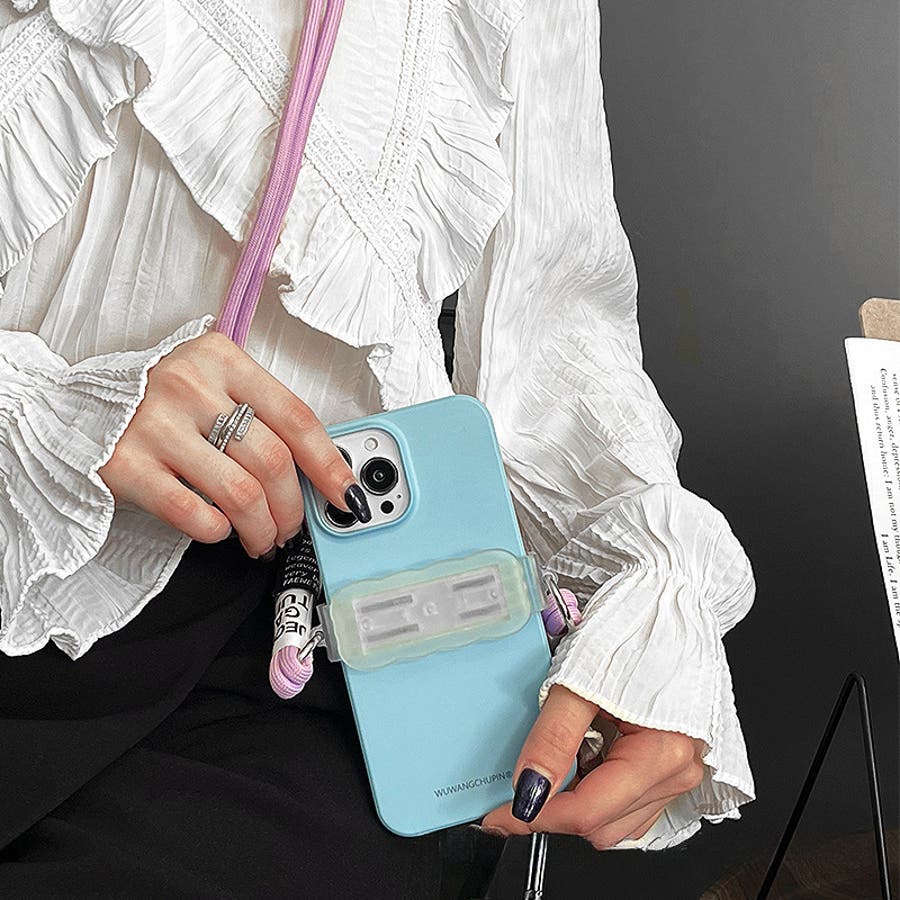 お好みのストラップをケースの上から後付けできるスマホクリップです。