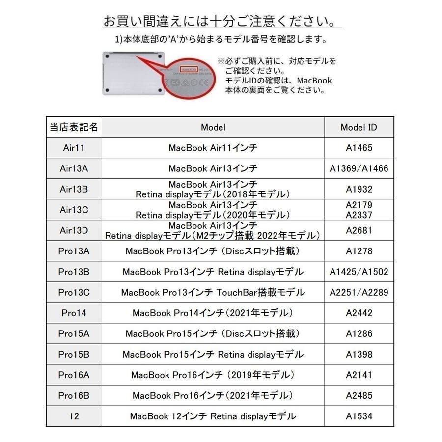 | 機種 | 12 / Air11 / Air13A / Air13B / Air13C / Air13D / Pro13A / Pro13B / Pro13C / Pro14 / Pro15A / Pro15B / Pro16A / Pro16B |