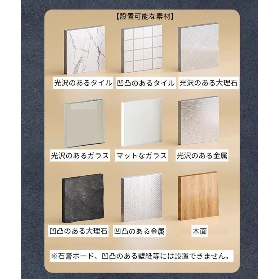 粘着シールでの貼り付けタイプで穴あけ不要&取り付けも簡単♪