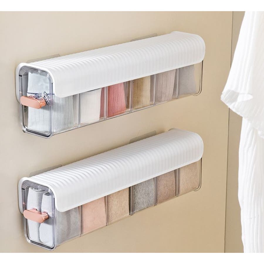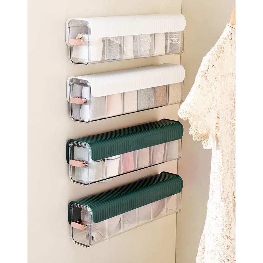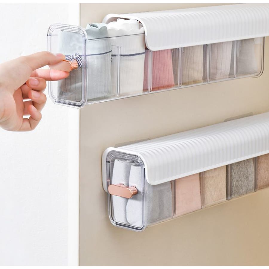 蓋付き&引き出し式の壁掛け下着収納ケースです。