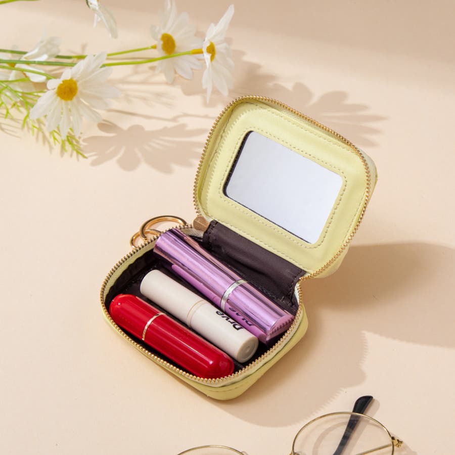 ナスカン&キーリング付属!鏡付きのリップ収納ケースです。