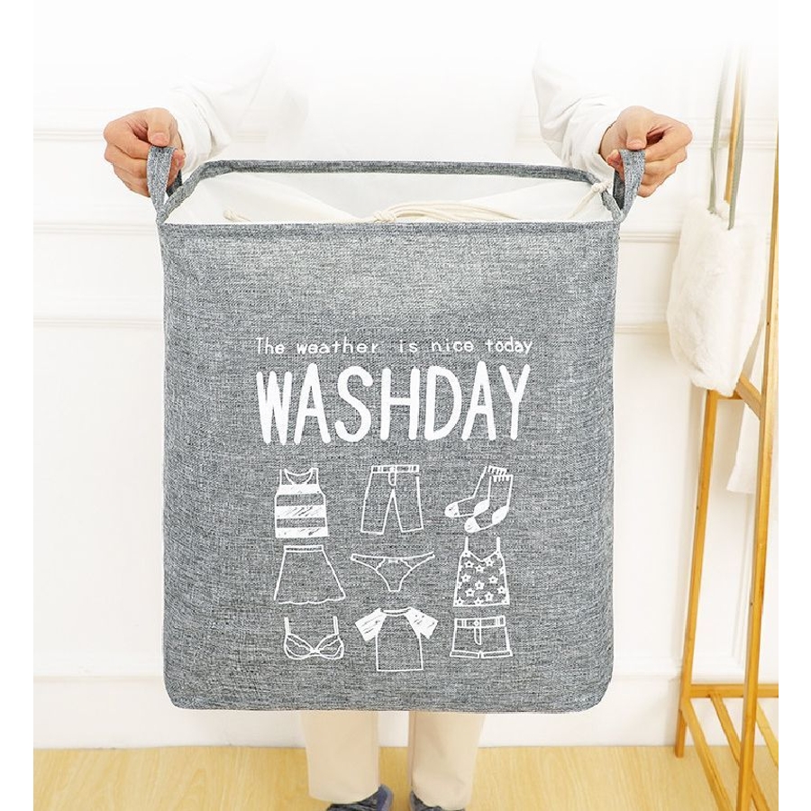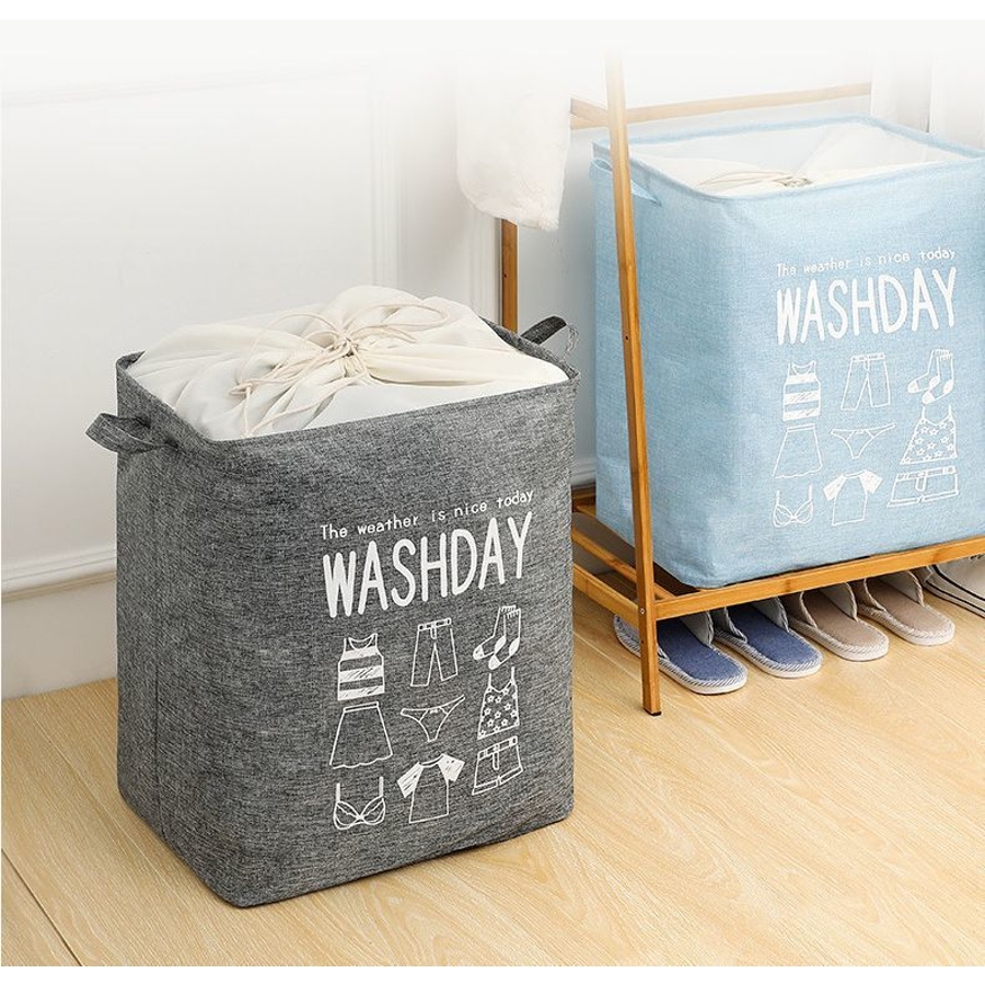 巾着タイプのランドリーバスケットです。
