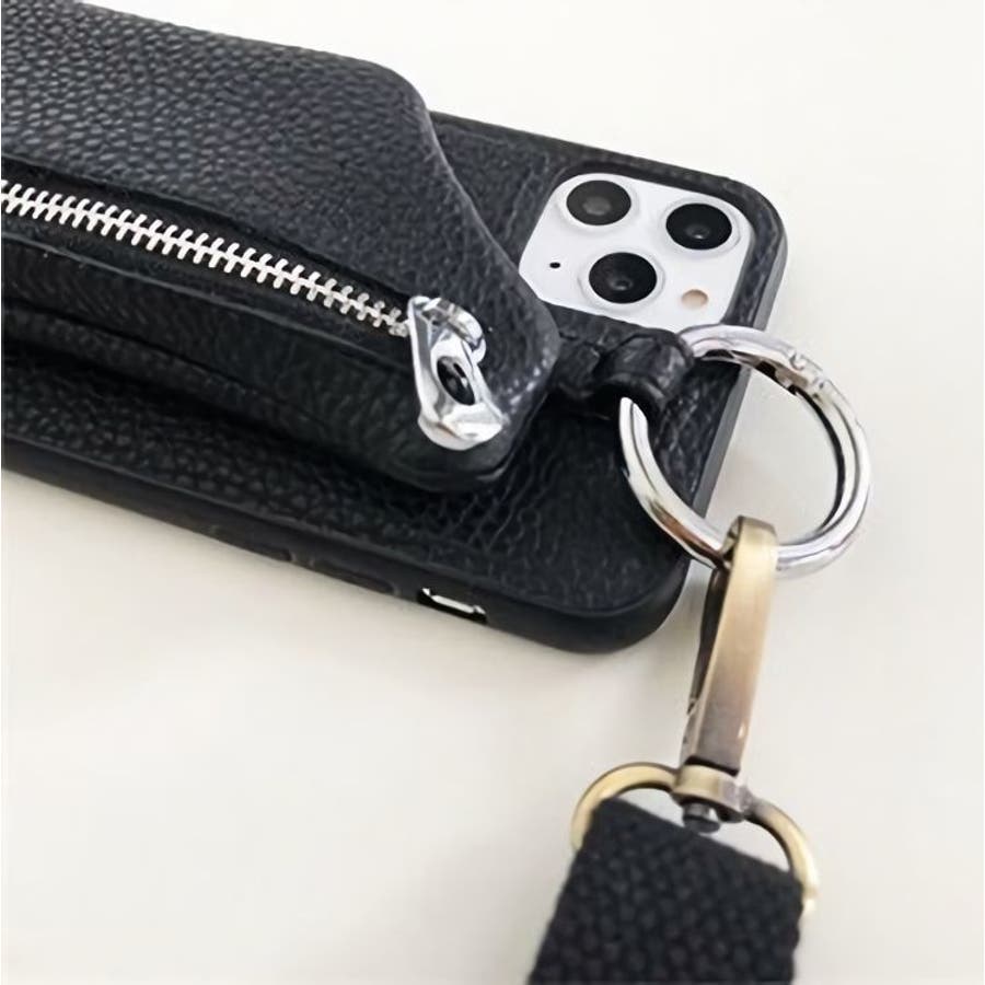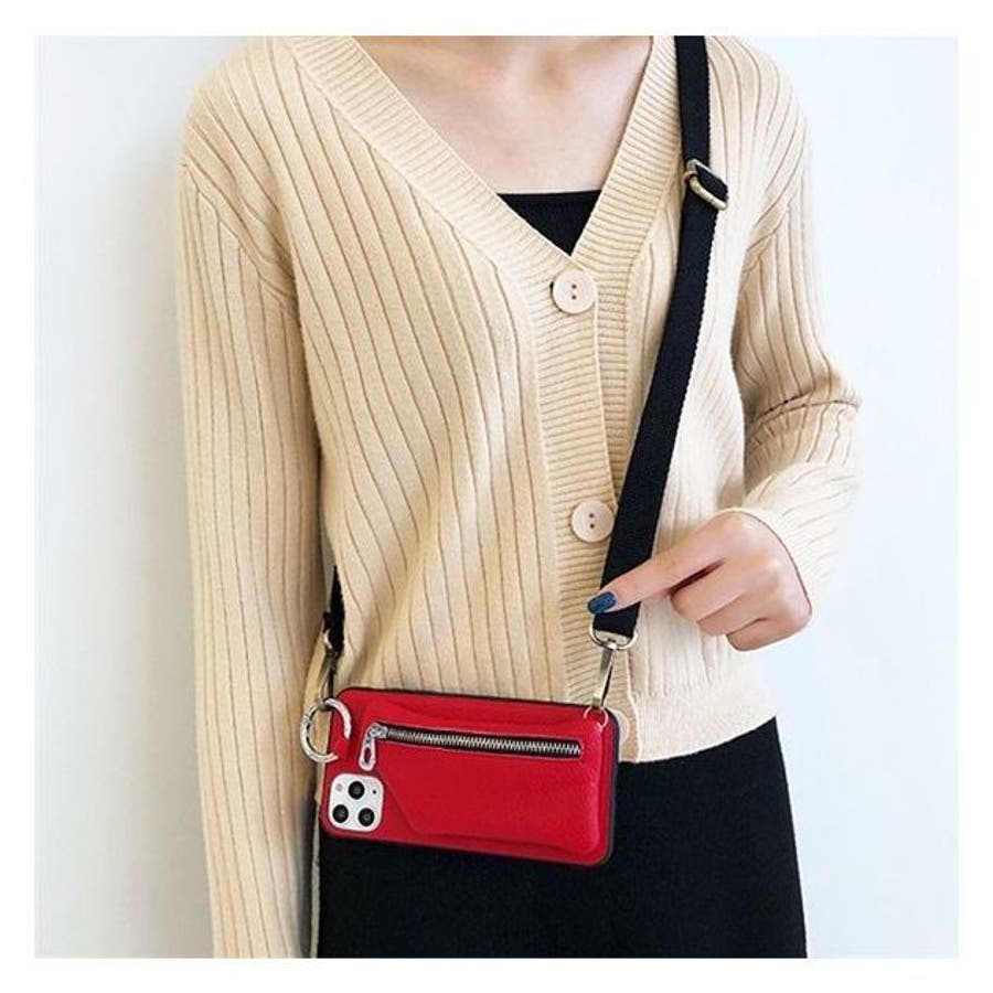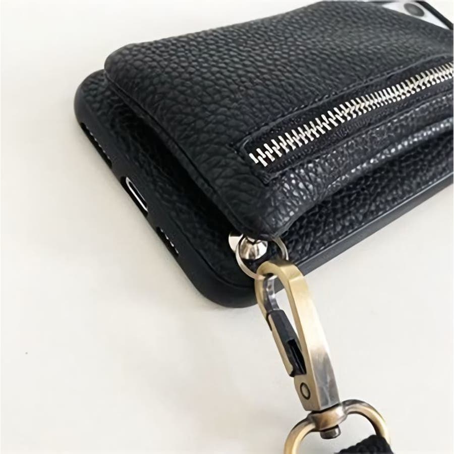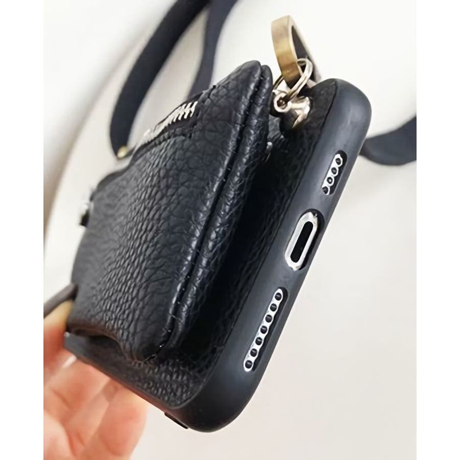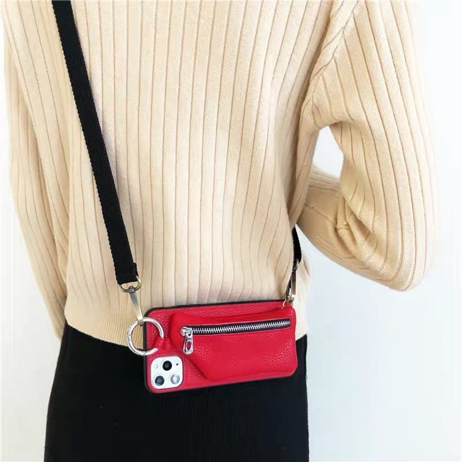 フェイクレザーのショルダーストラップ付きiPhoneケースです。
