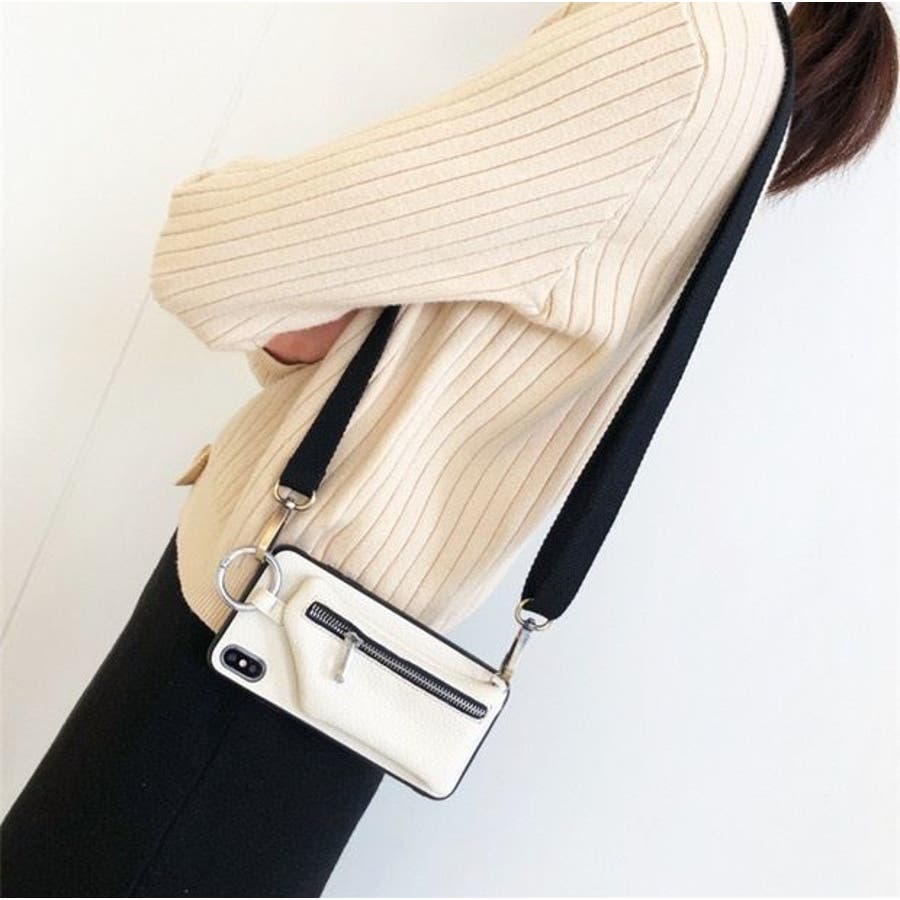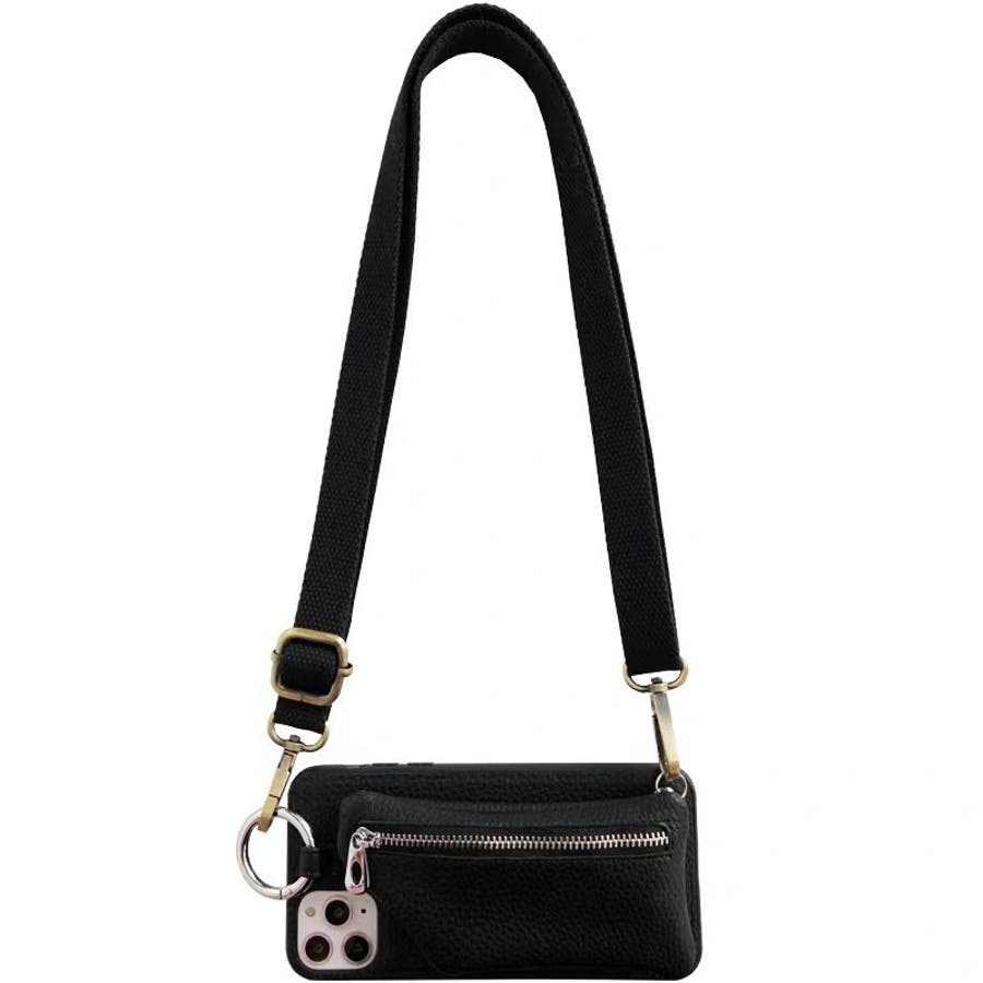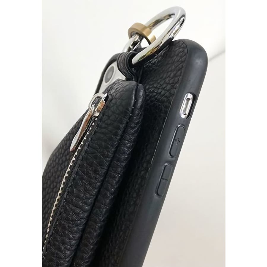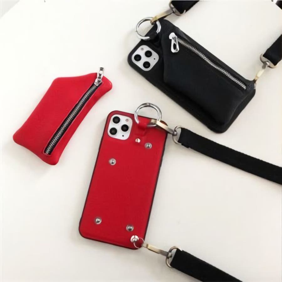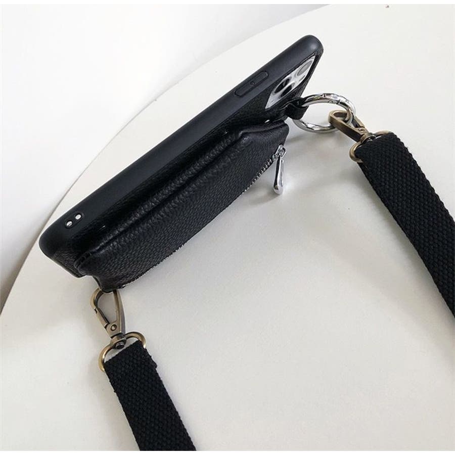 フェイクレザーのショルダーストラップ付きiPhoneケースです。