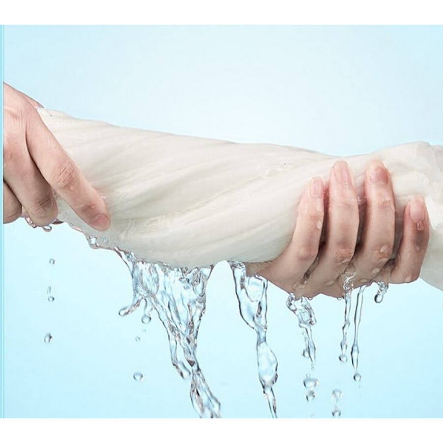 水で戻して(1分以内)絞ればタオルとして使用可能、完全に乾かせばバスタオルとしても使用できます。