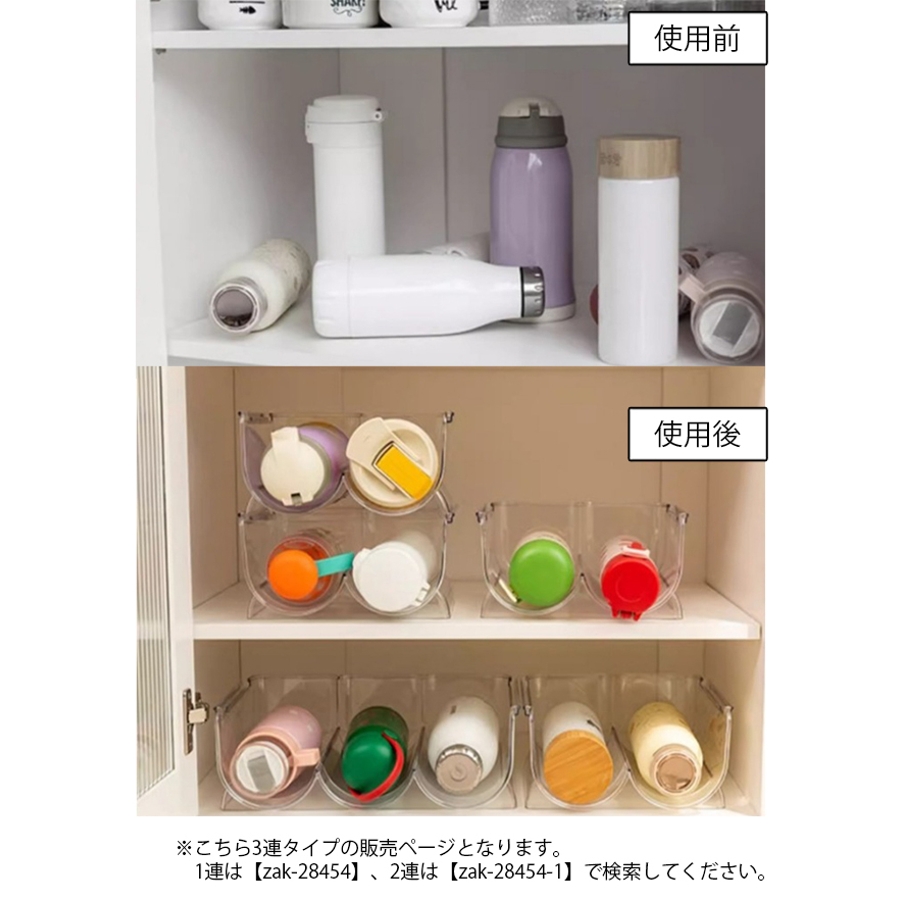 立てて収納すると倒れやすいボトルを安定して整理収納できます♪
