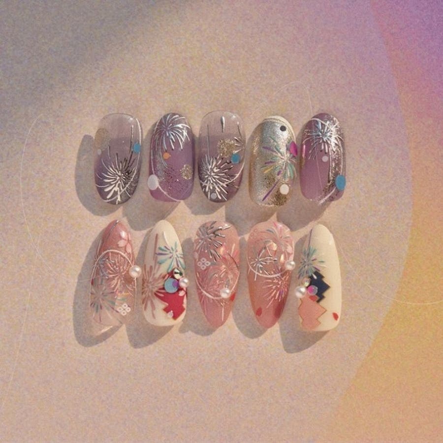 お祭りや浴衣を着る際などにぴったりな花火のデザイン♪