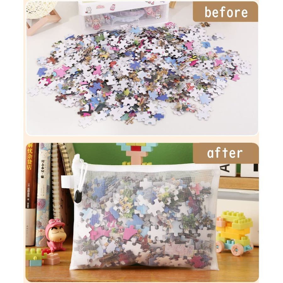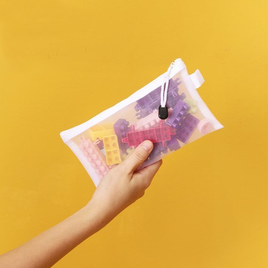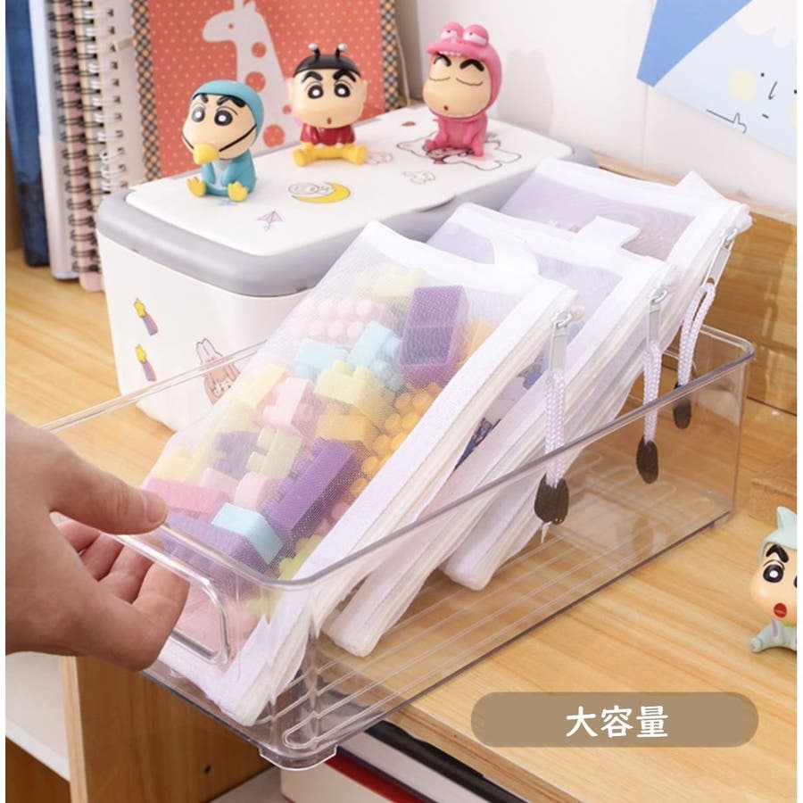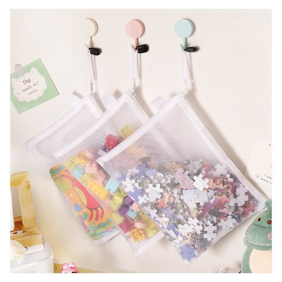 メッシュ素材で中が見えやすいので、パズルやおもちゃの収納にピッタリ◎