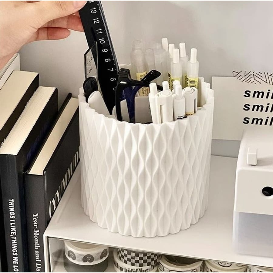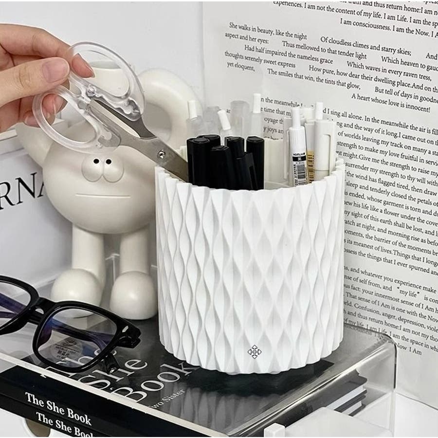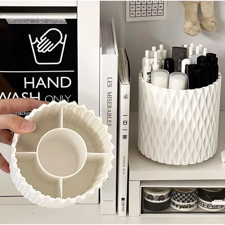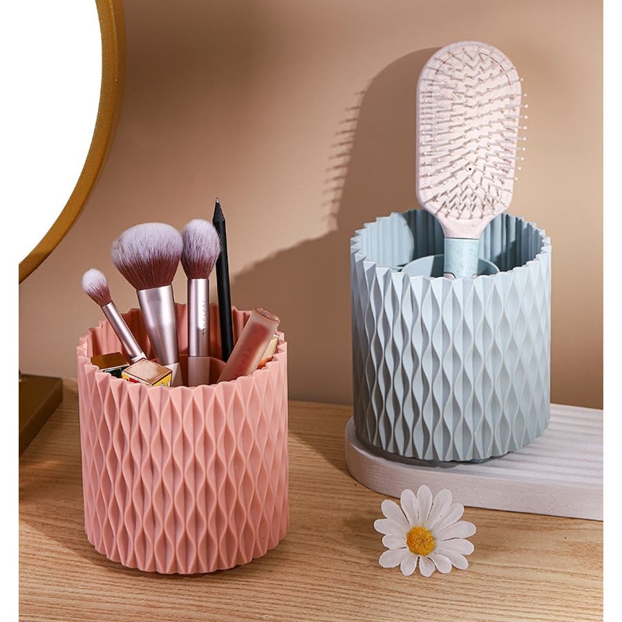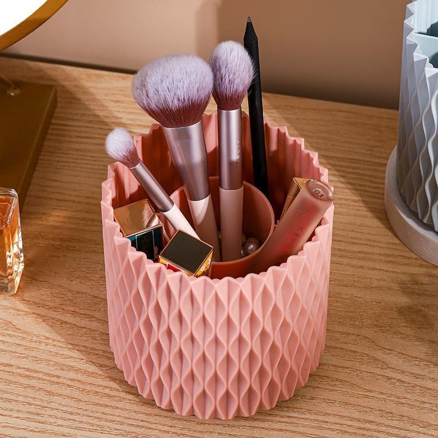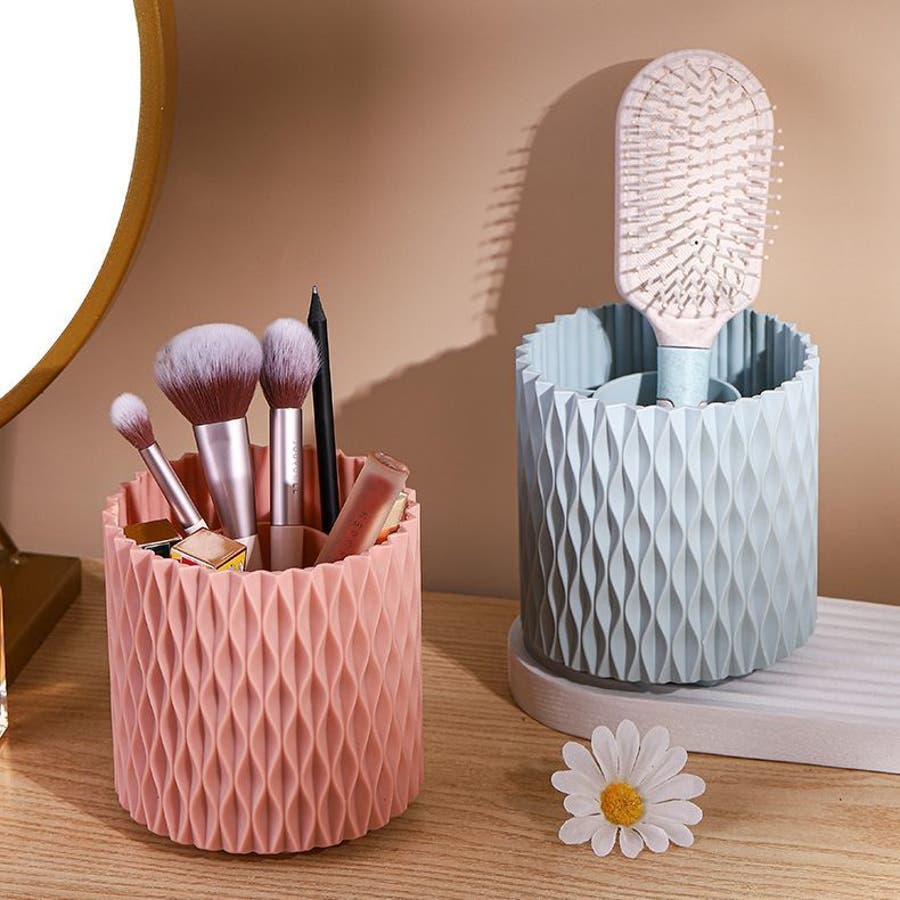 おしゃれな円筒形デザインのメイクブラシスタンドです。