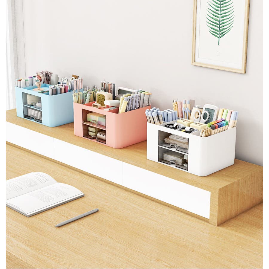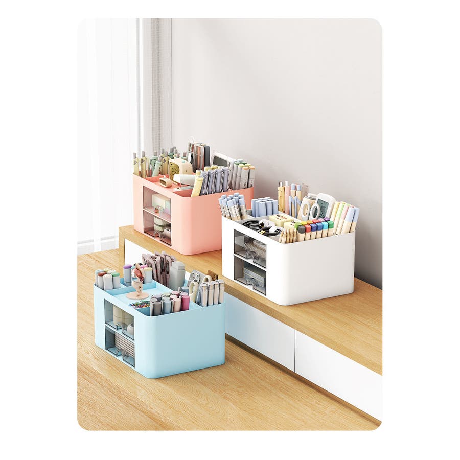 ペン立てから浅めのトレー部分まであるため、お持ちのアイテムによって収納場所を選ぶことができます。
