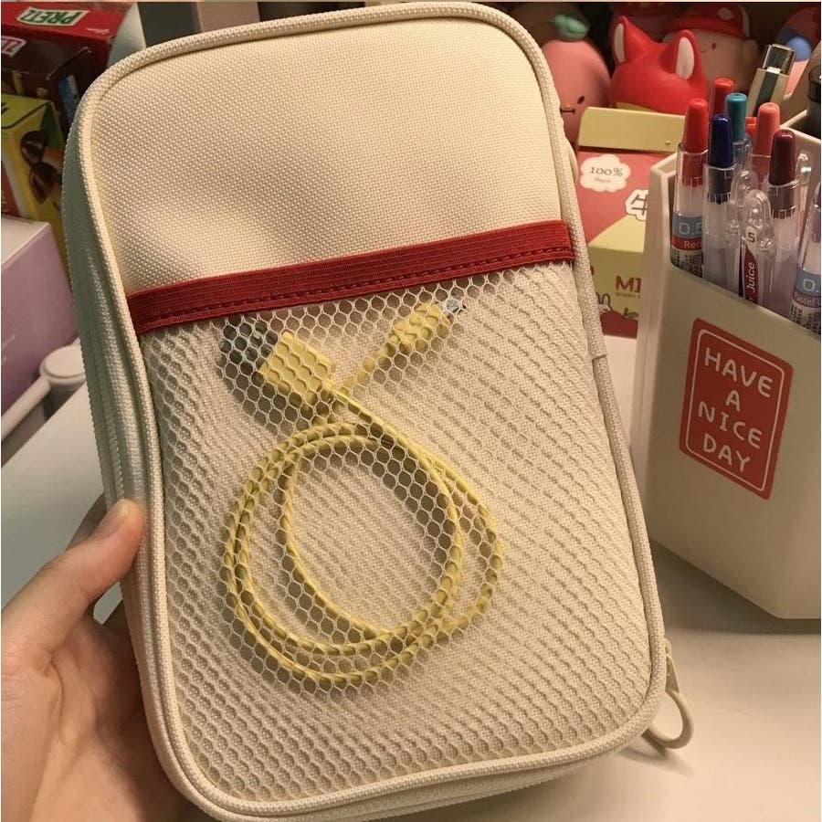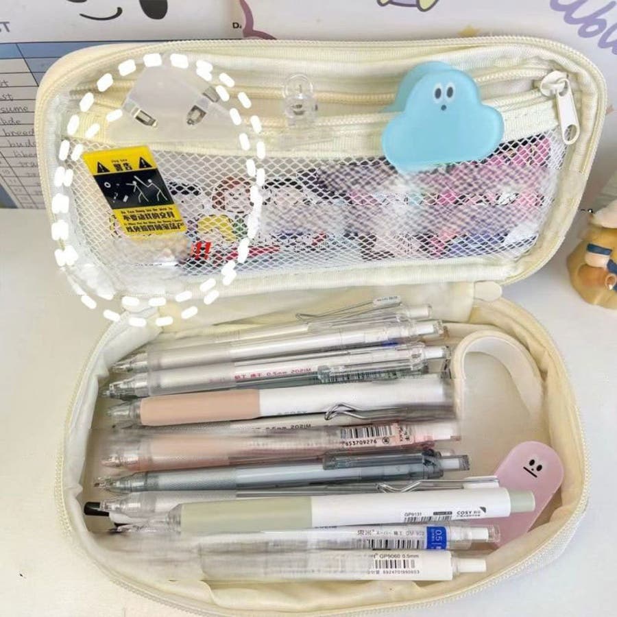 大容量なので筆記用具以外にもはハサミなどの文房具を入れたり、スマホの充電ケーブルなどをしまうポーチとして使うこともできます。