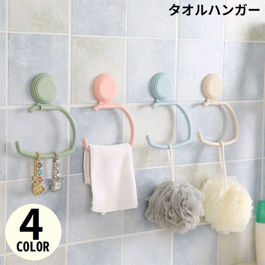 4カラーから選べる壁掛け粘着式のタオルハンガーです。