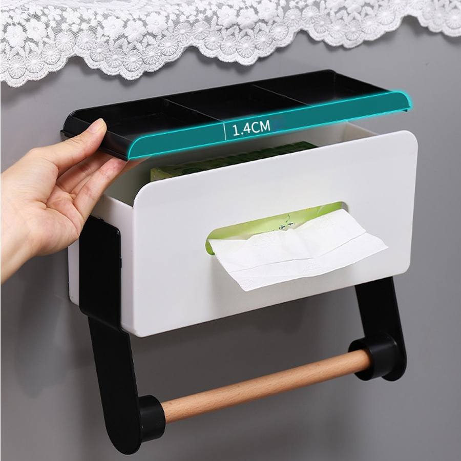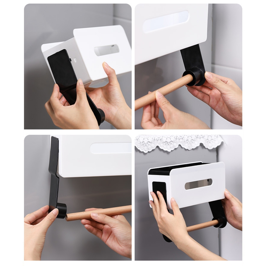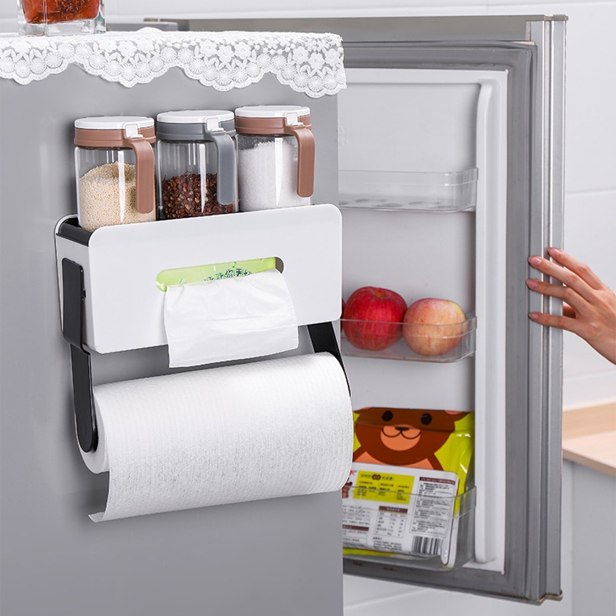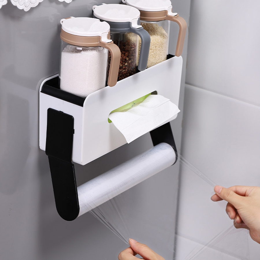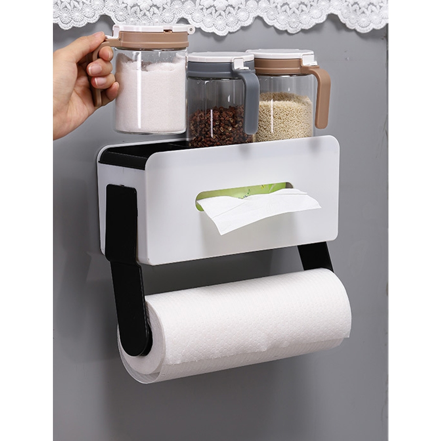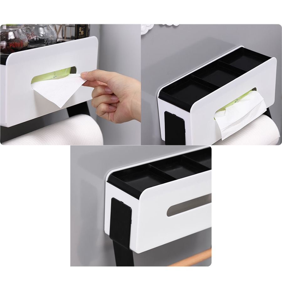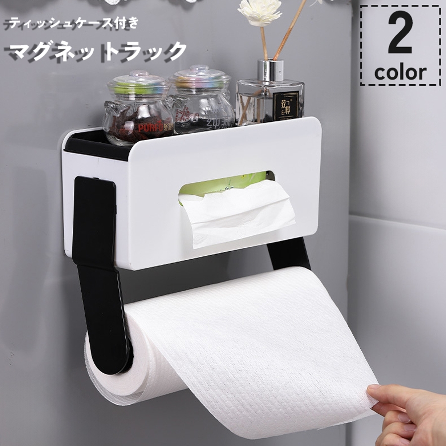 ティッシュ入れや調味料置きとしても使用でき、下の部分はキッチンペーパー・サランラップを通して使ったり、タオル掛けとしてもお使いいただけます。