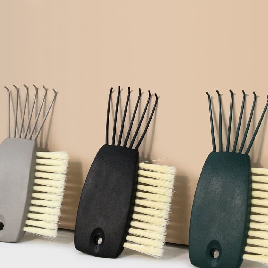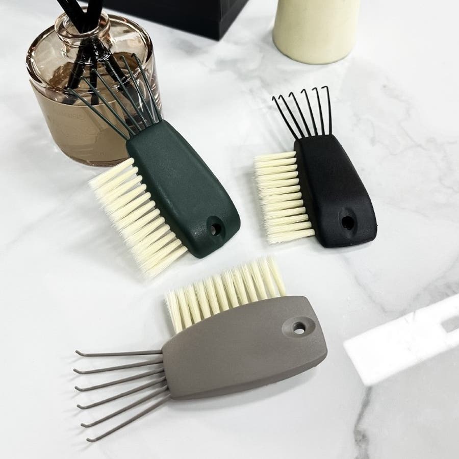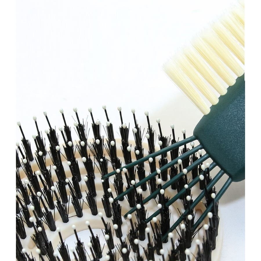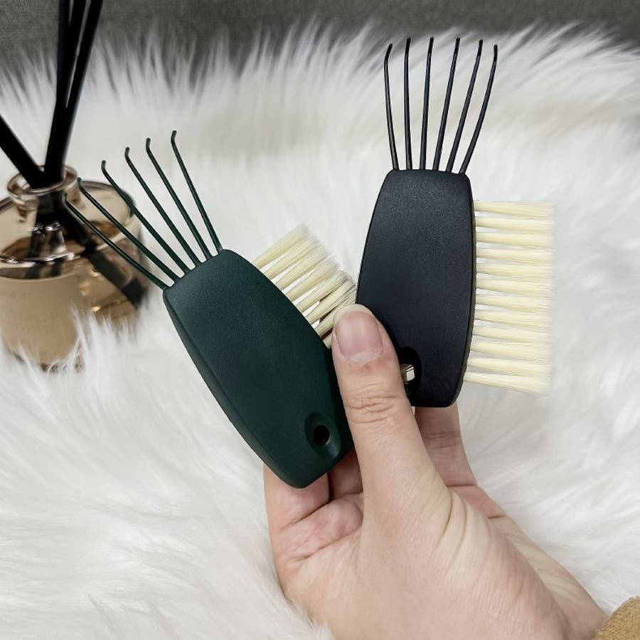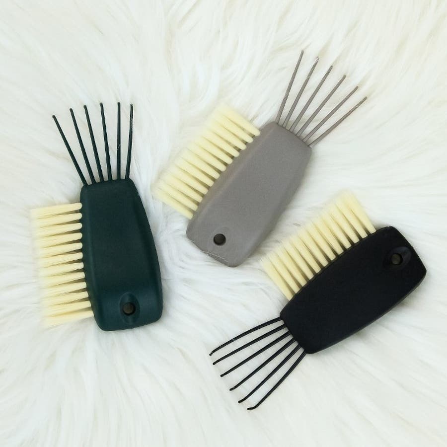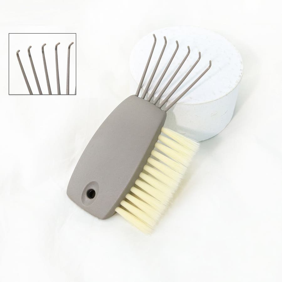 鍬のような形のブラシは絡まった髪の毛を掻きだし、細かい毛のブラシは埃や汚れを払ってくれます♪