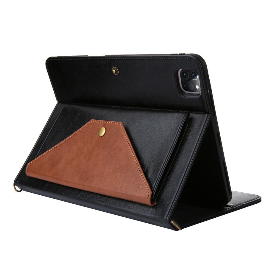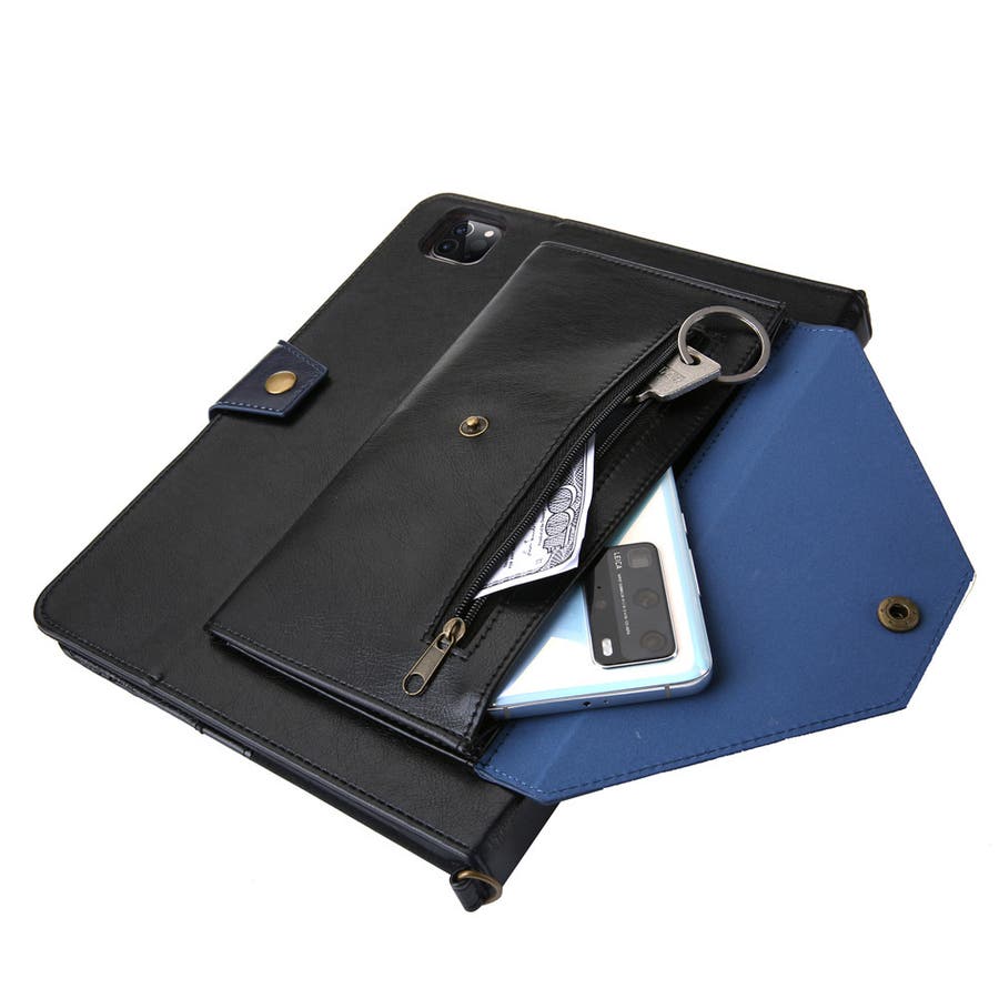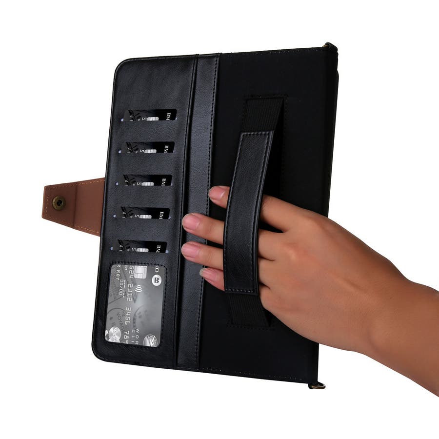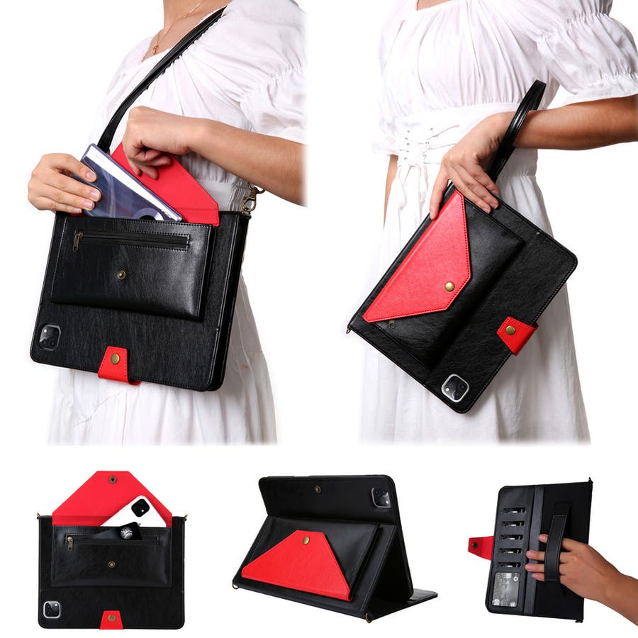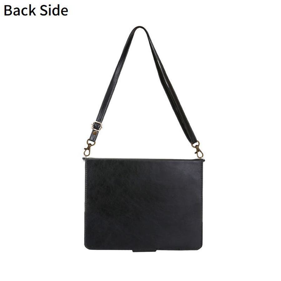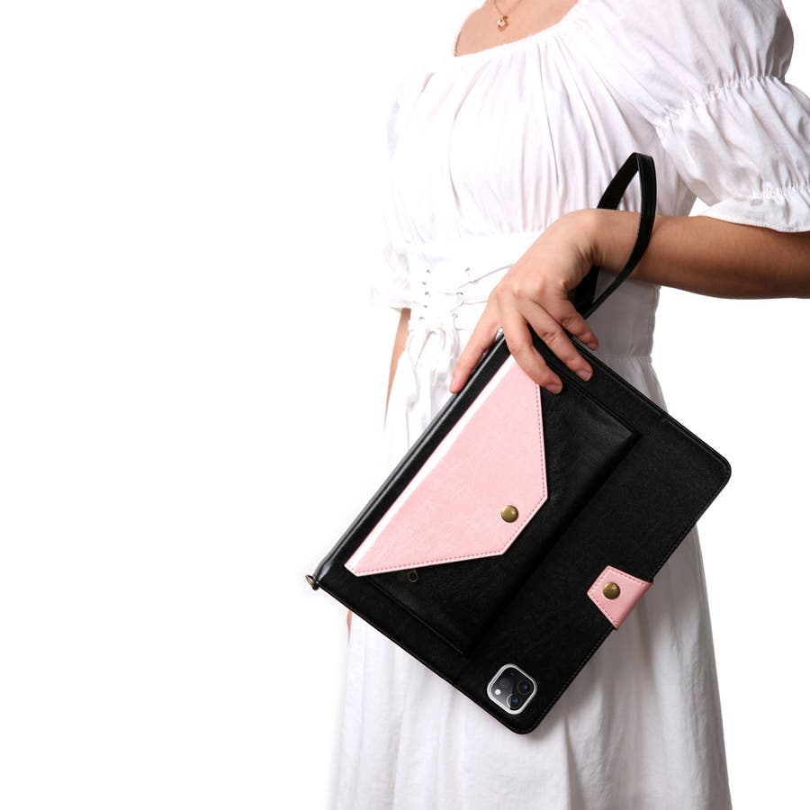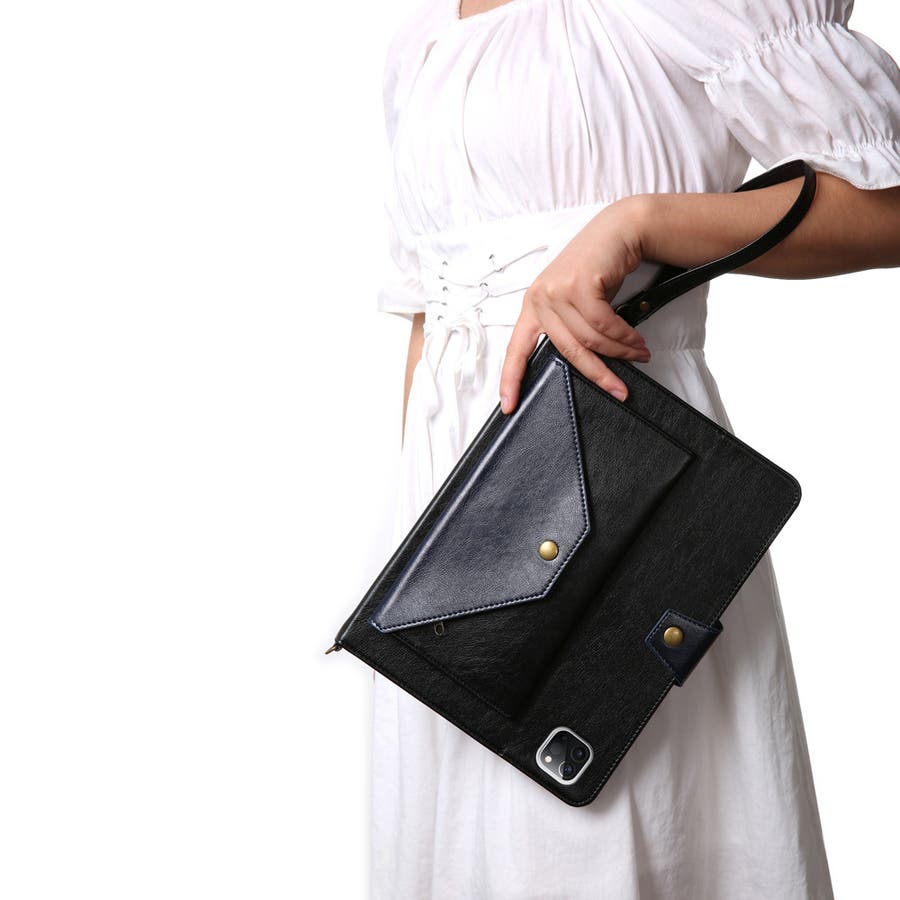 手持ち、手提げ、肩掛けOKの3WAY!三つ折り横置きタイプのブック型iPadケースです。