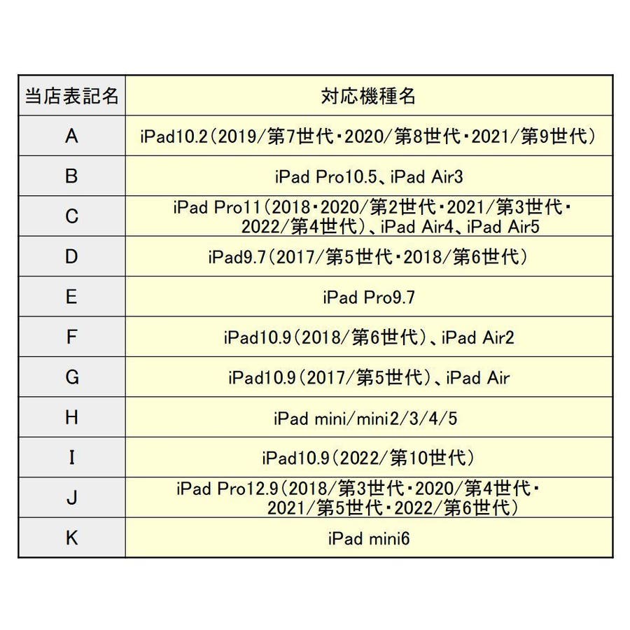 C・・・iPad Pro11(2018・2020/第2世代・2021/第3世代・2022/第4世代)、iPad Air4、iPad Air5