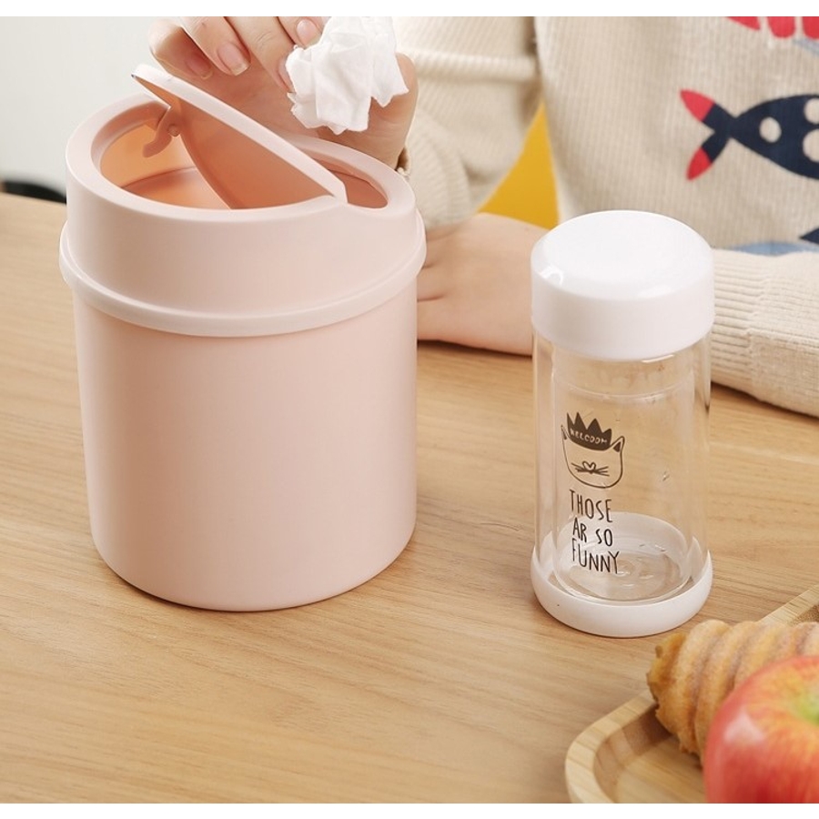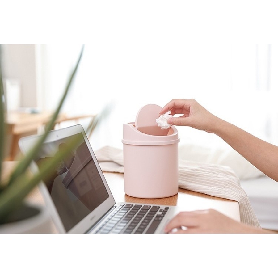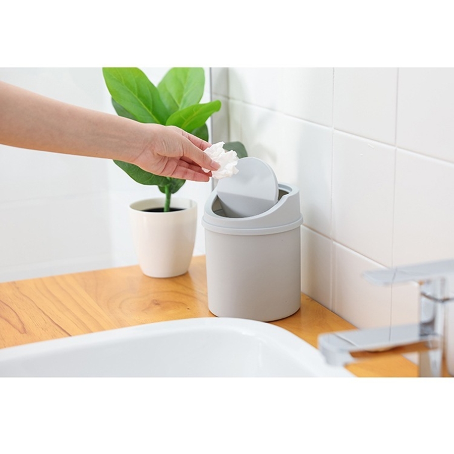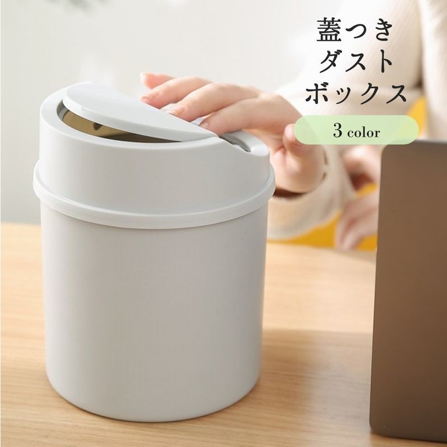 シンプルな普通の小さいゴミ入れです。机の上において、ちょっとしたゴミを入れるように買いました。スイングの蓋は、ゴミを入れたあとは手で戻さないと閉まりません。