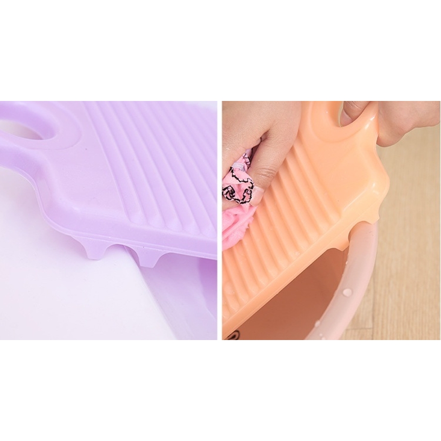 洗面台や洗い桶に引っかけやすい溝付き◎