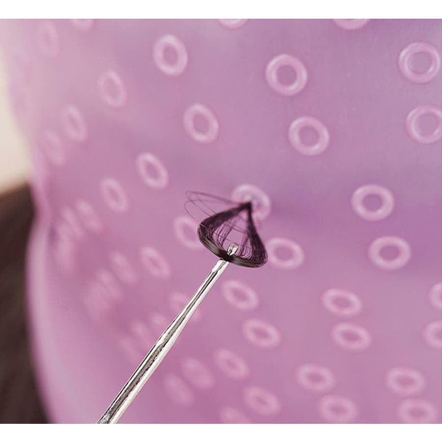 付属のニードルで穴を開け、髪の毛を穴から出してご使用ください!