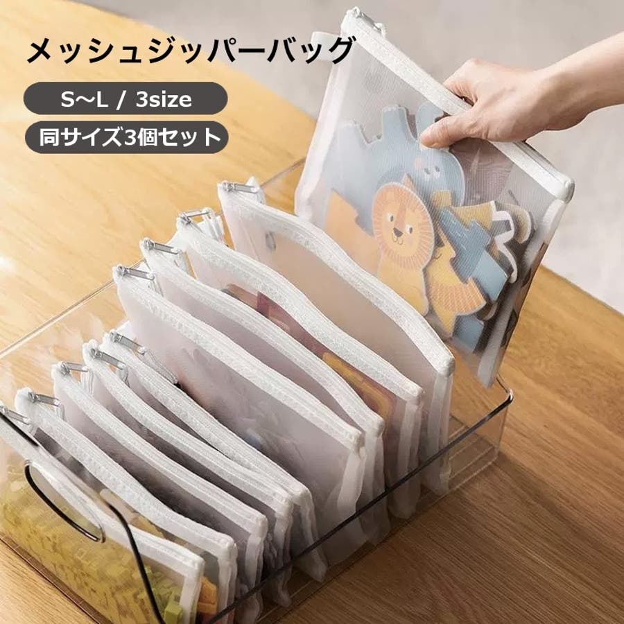 メッシュジッパーバッグ メッシュジッパーポーチ 3個セット