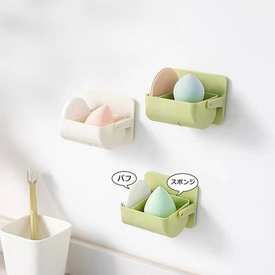 壁掛けタイプのメイクスポンジ&パフホルダーです。