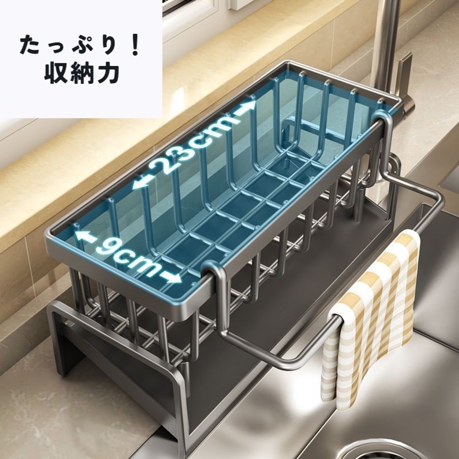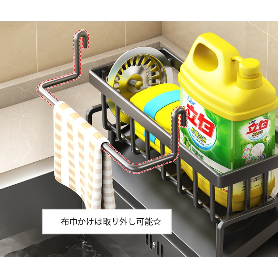 布巾掛け付きで台拭きなどを干せて便利です☆