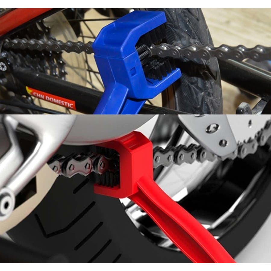U字の端でチェーンの掃除ができ、もう一端でギアや車輪等のパーツを掃除できます◎