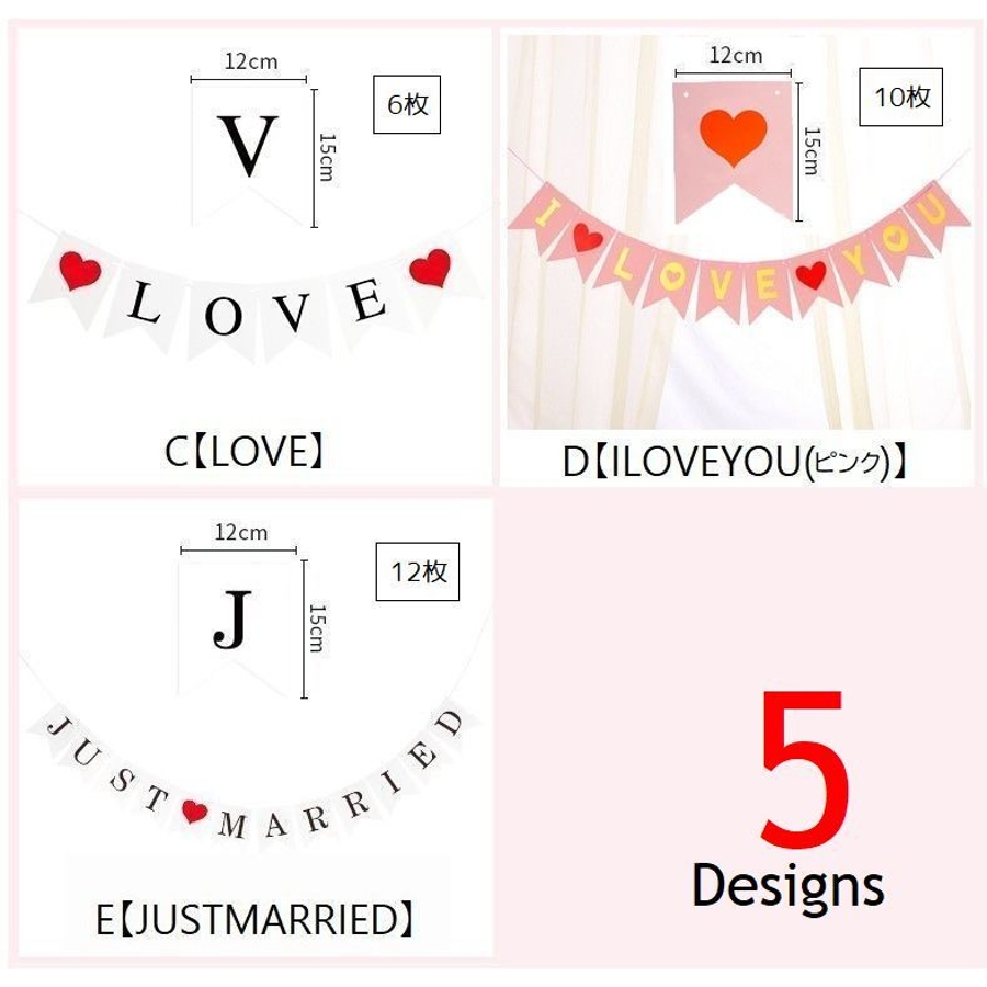 | デザイン | A【ILOVEYOU】 / B【MARRYME】 / C【LOVE】 / D【ILOVEYOU【ピンク】】 / E【JUSTMARRIED】 |