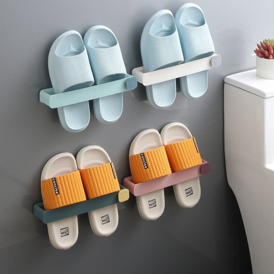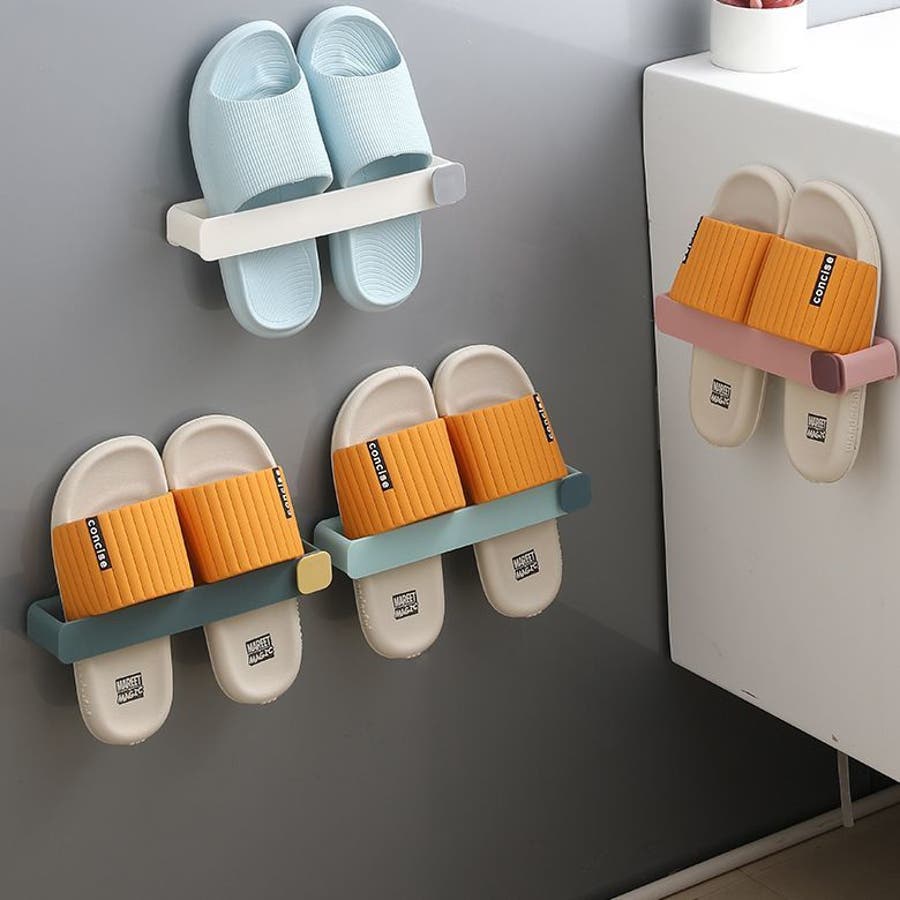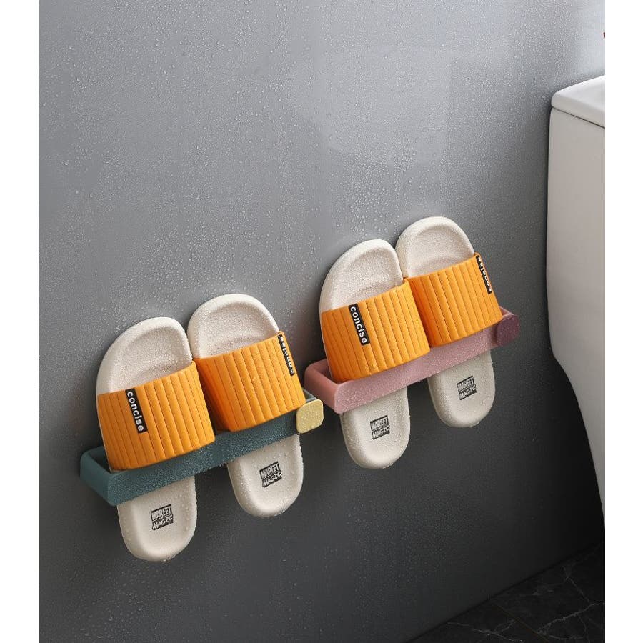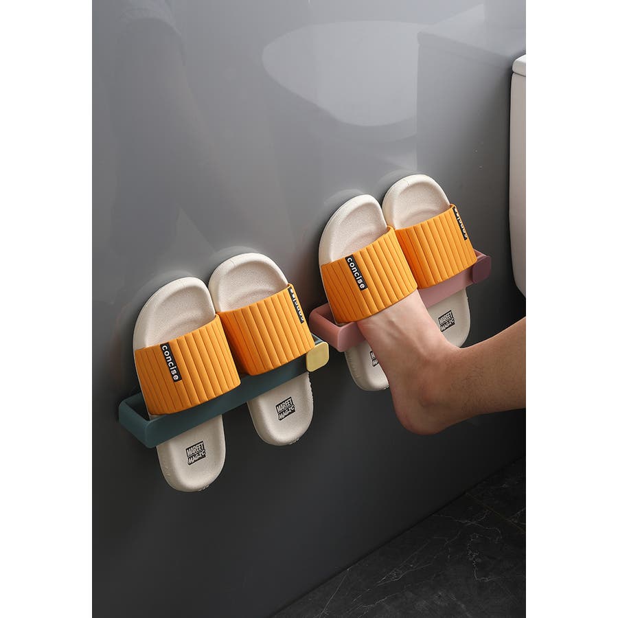 貼付けタイプのスリッパラックです。
