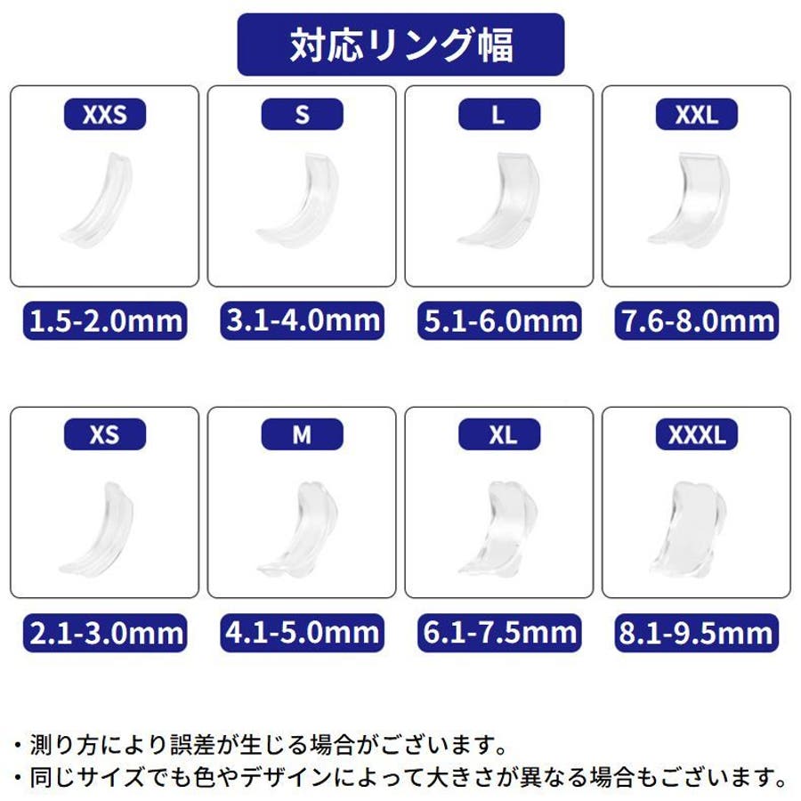 柔らかいシリコン製の嵌入式リングアジャスター8サイズセットです。