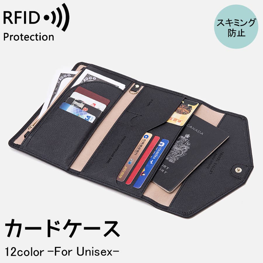 クレジットカード、パスポート、通帳、お札などを収納でき、ペンホルダーも付属している多機能なカードケースです。