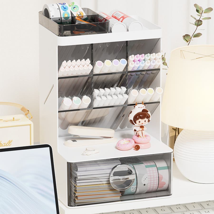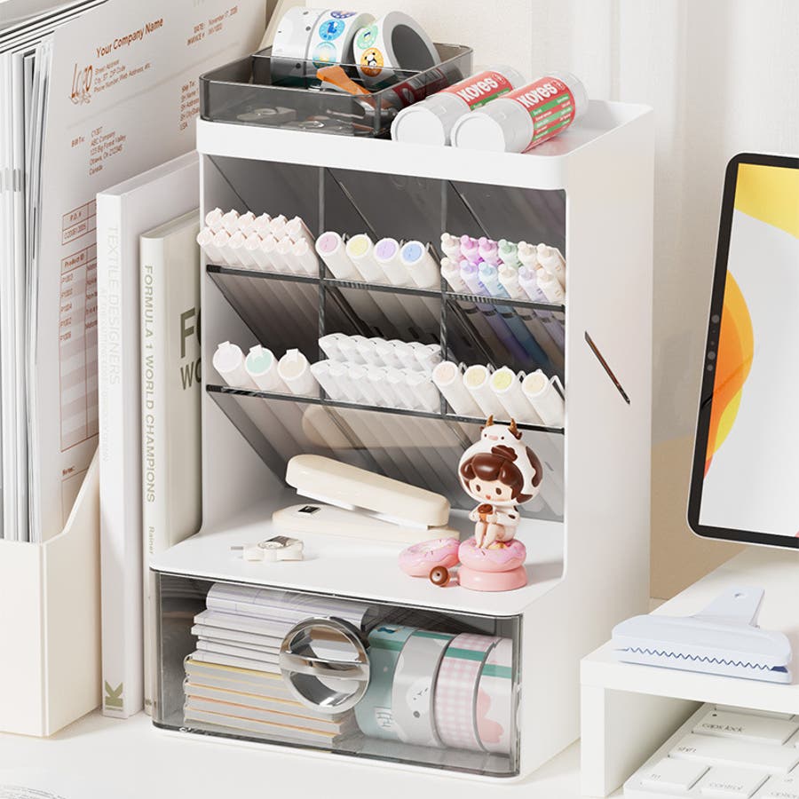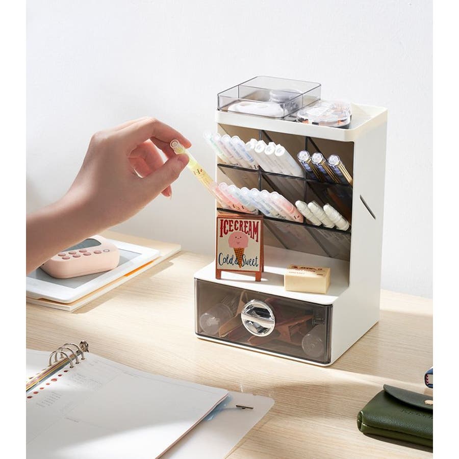 引き出し&トレー付きの斜め入れペンスタンドです。