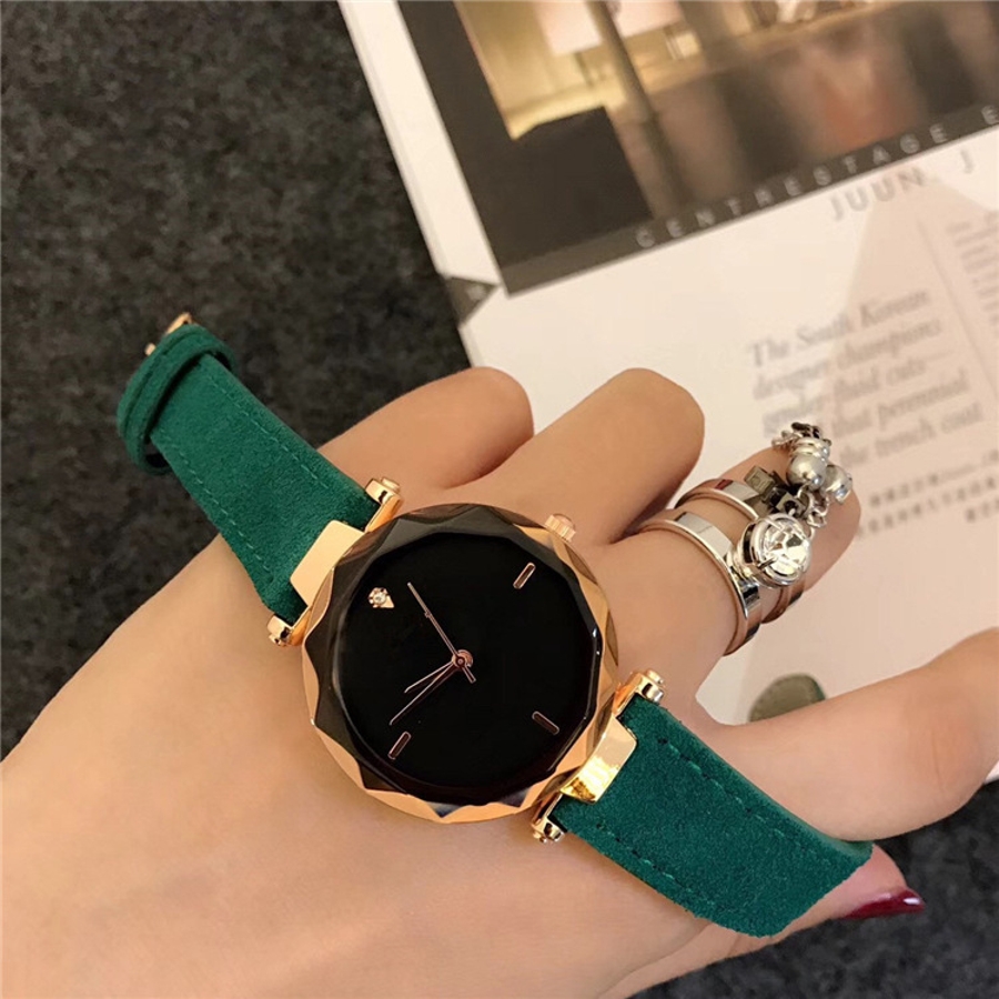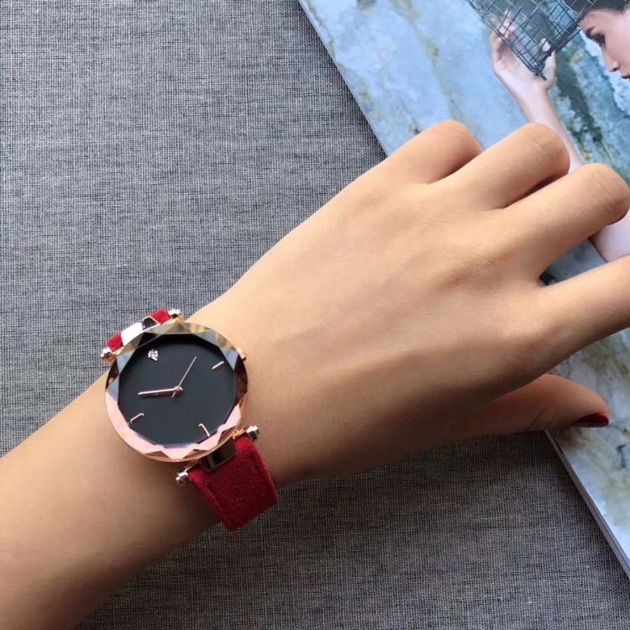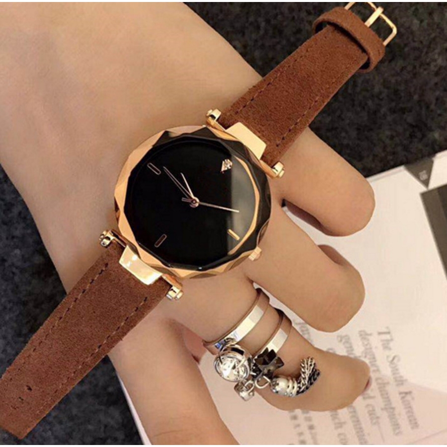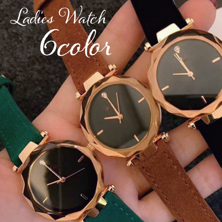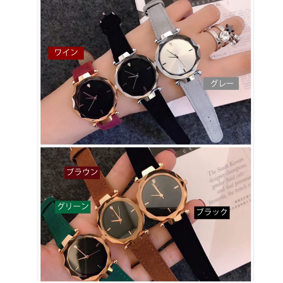 スエード調のベルトにブラックの文字盤がおしゃれ♪