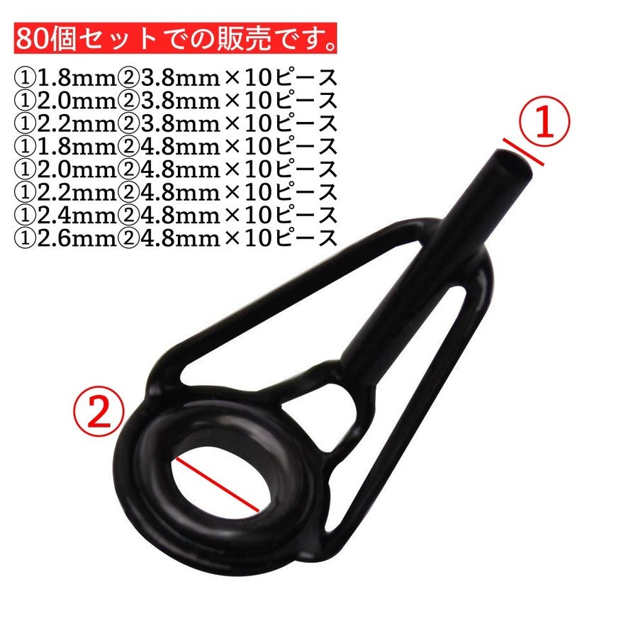 予備でもっておくと安心の釣り竿ロッドガイド80個セットです。