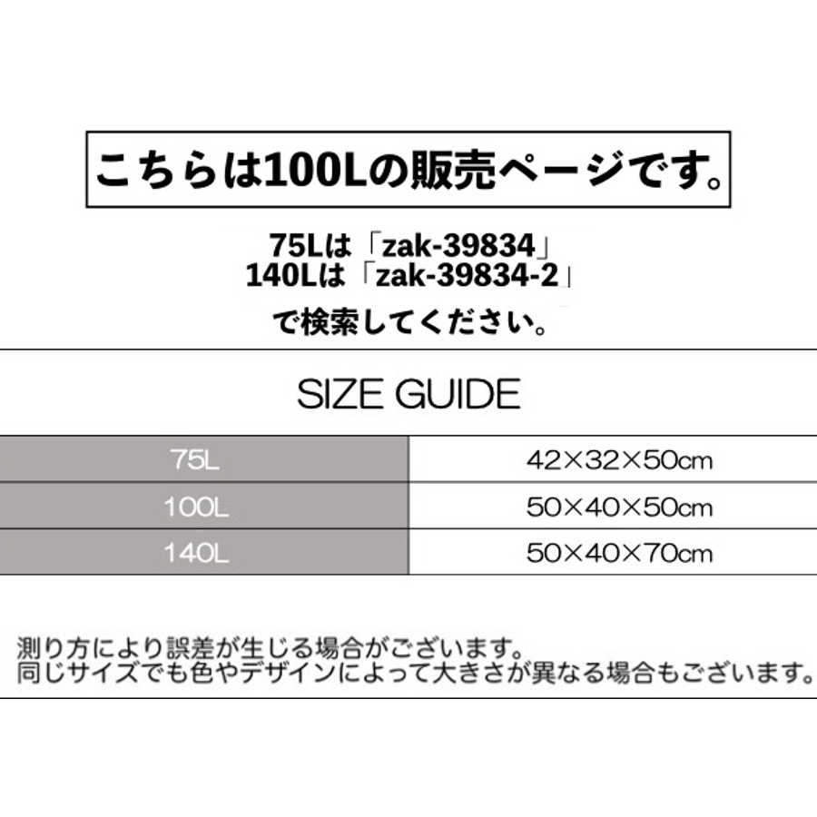 | サイズ | 100L【50×40×50cm】 |