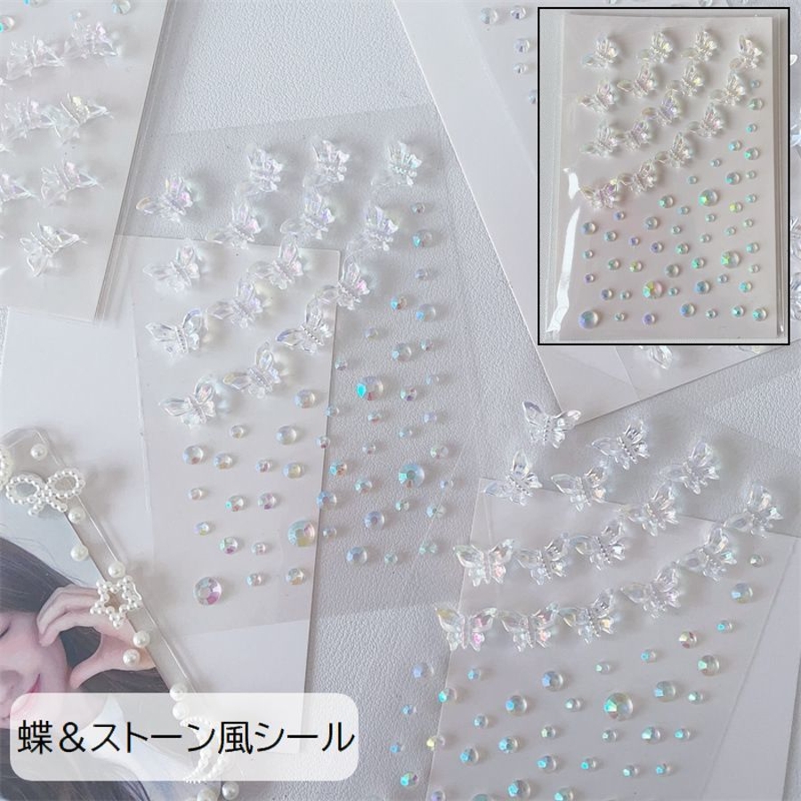 立体的な蝶やストーン風デザインがとっても可愛いシールです。