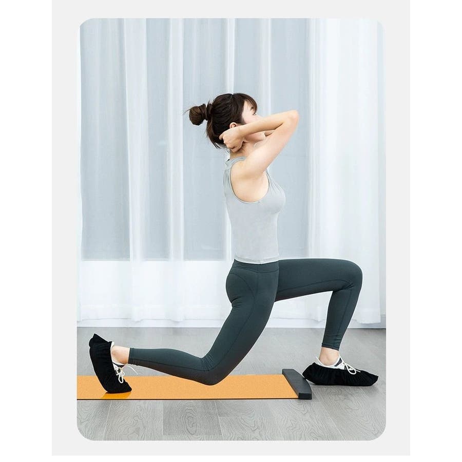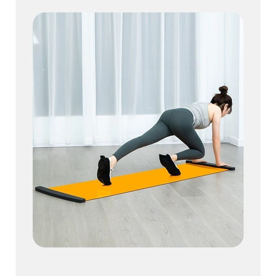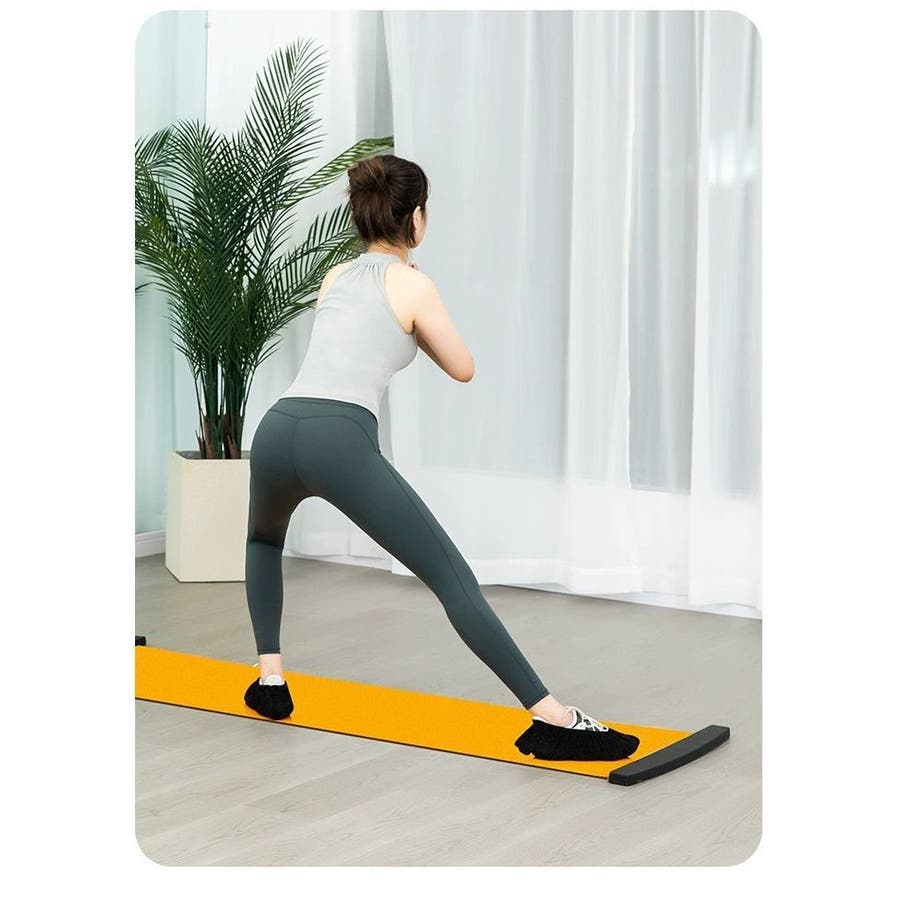 滑りやすいスライドボードの上で自然にバランスをとろうとするので