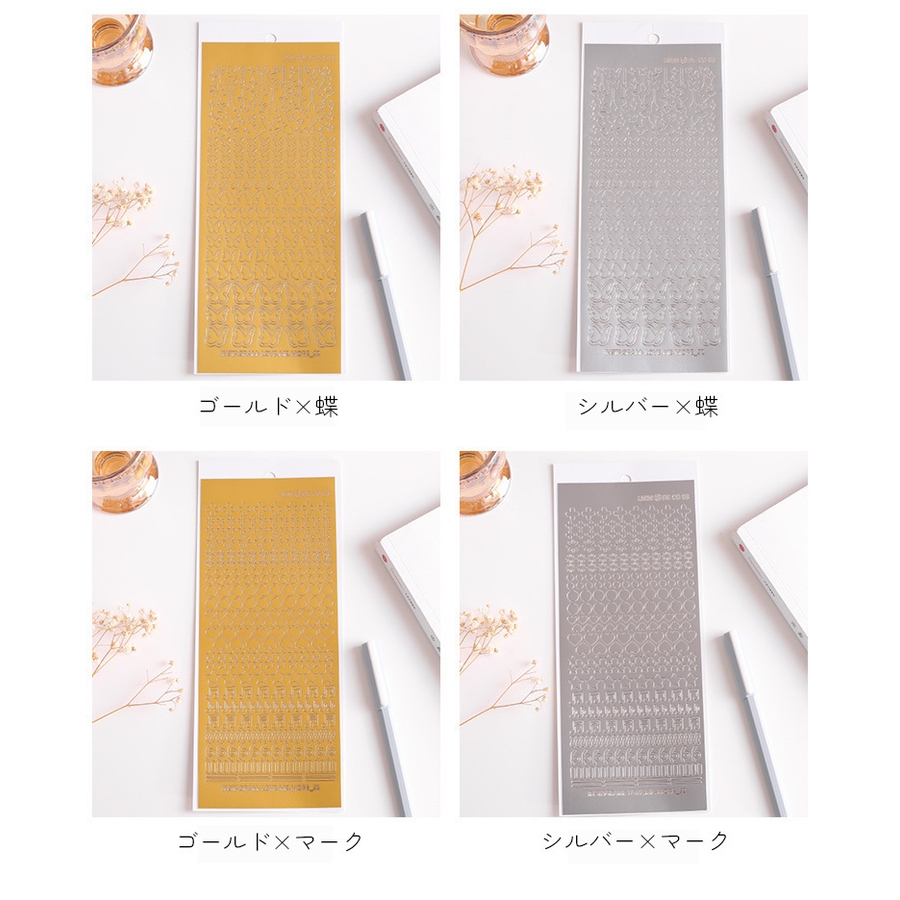 | カラー×デザイン | ゴールド×アルファベット1 / ゴールド×アルファベット2 / ゴールド×蝶 / ゴールド×マーク / ゴールド×星 / シルバー×アルファベット1 / シルバー×アルファベット2 / シルバー×蝶 / シルバー×マーク / シルバー×星 |
